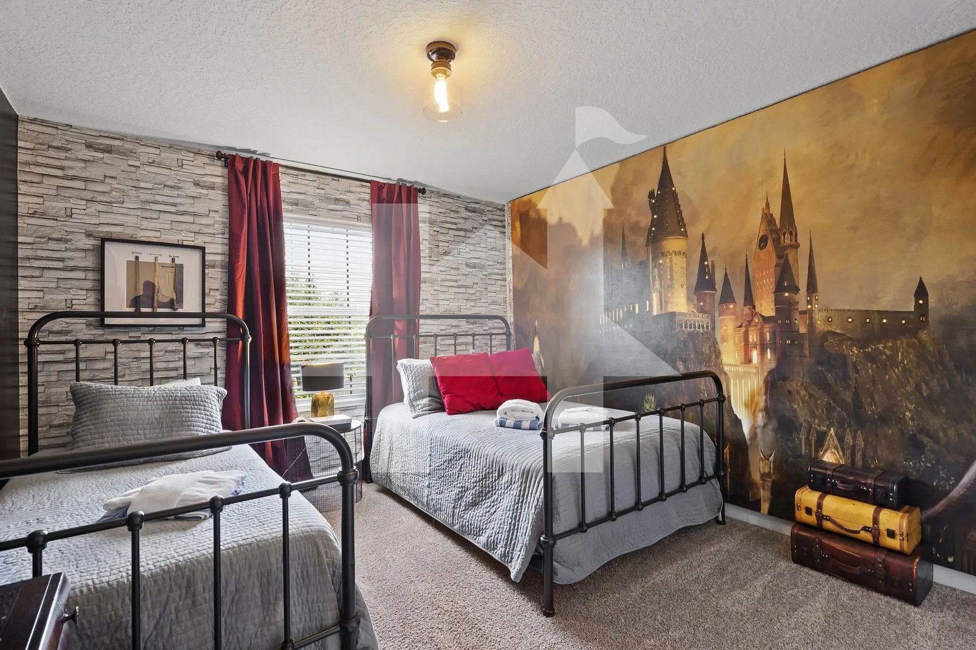 Bedroom 3 (Harry Potter Theme): 1 Full bed + 1 Twin bed, designed for magical nights with themed décor.
