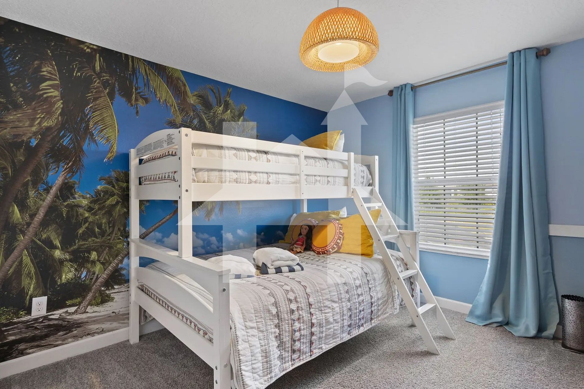 Bedroom 4 (Moana Theme): Bunk bed with 1 Full + 1 Twin, colorful and fun, a favorite among kids.