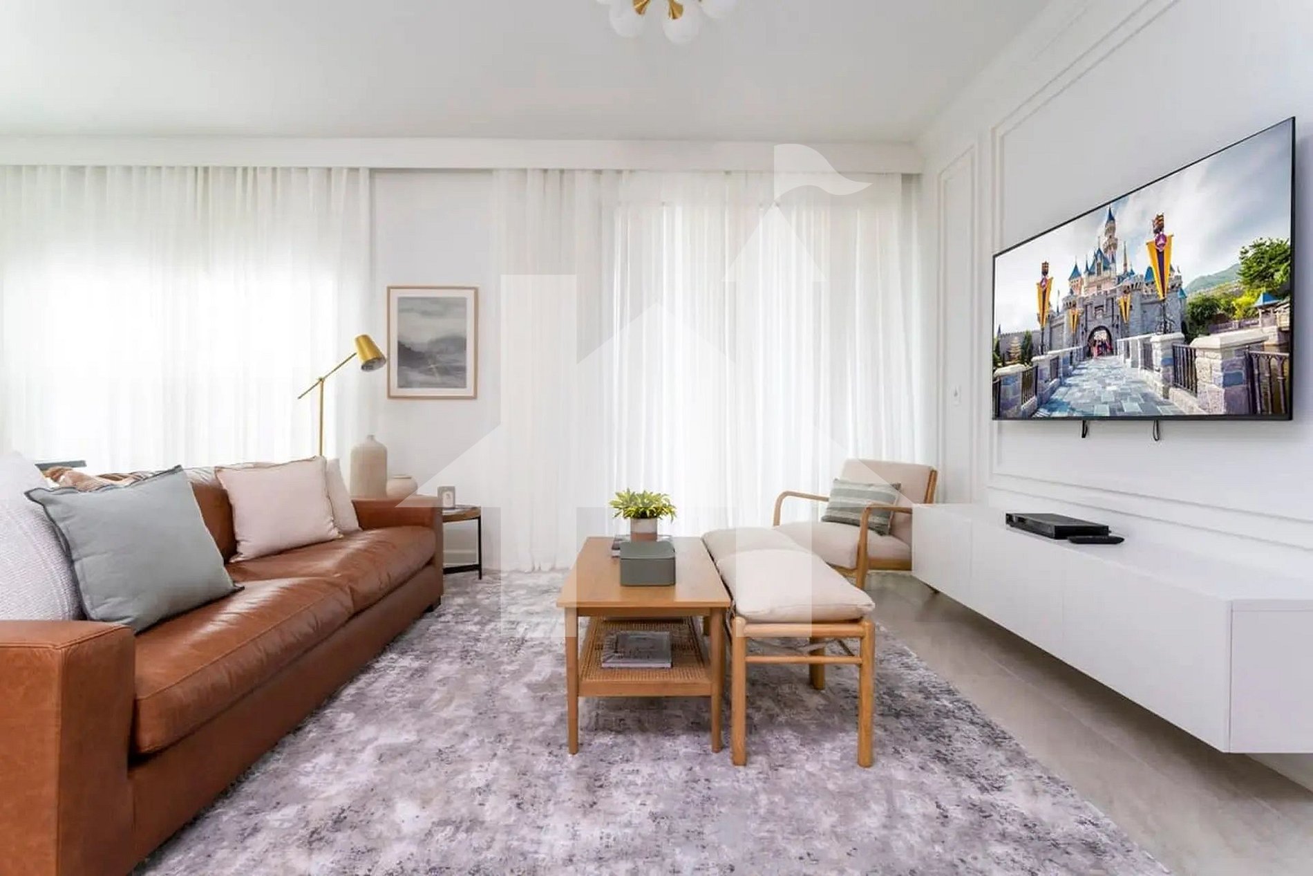 Step into a bright and open living space, seamlessly connected to the dining area and a fully equipped kitchen—perfect for entertaining. The modern decor, comfortable seating, and large TV make it the ideal spot to relax after a day at the parks.