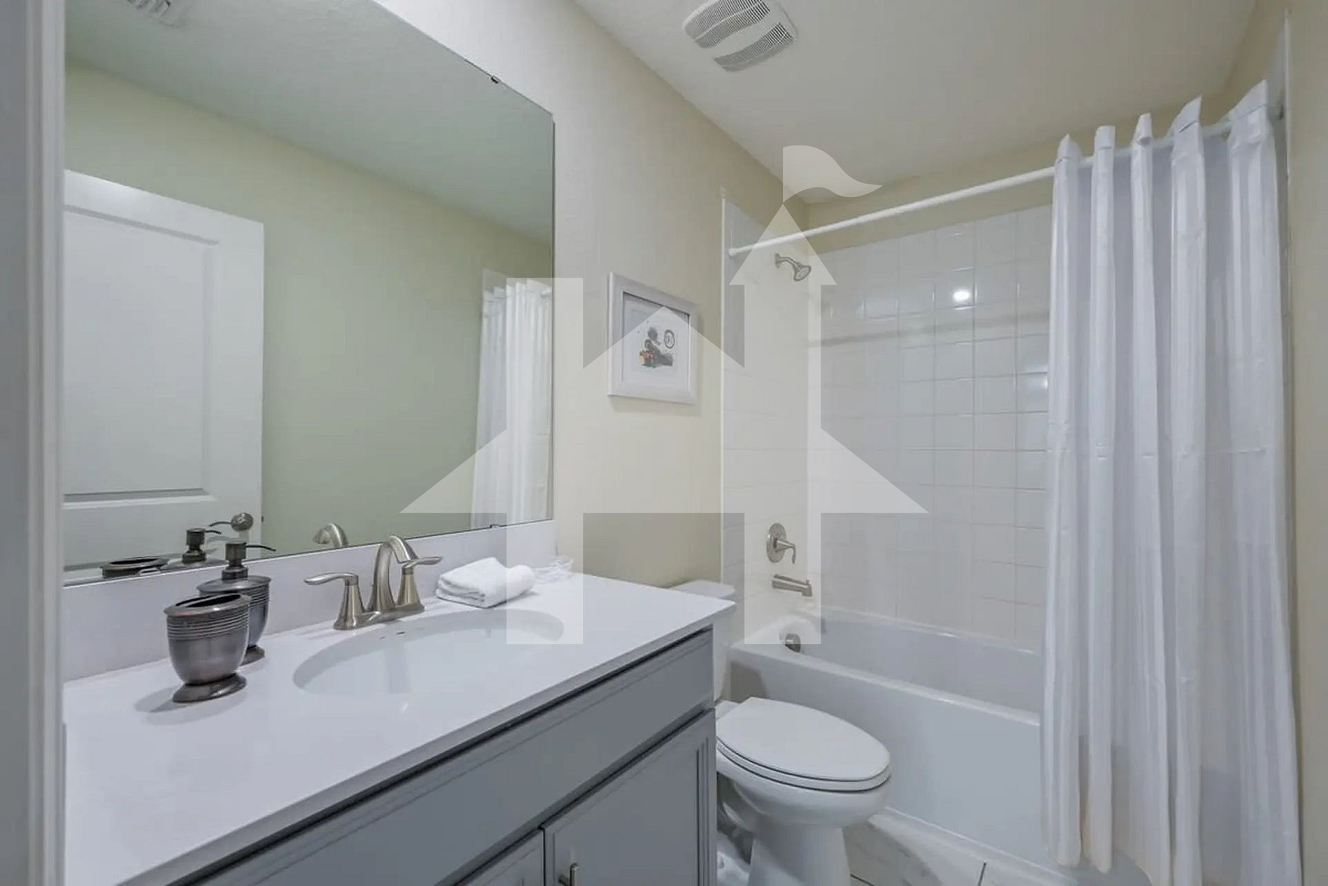 Guests have full access to the house and resort common areas, including the clubhouse with resort-style pool, lazy river, water slides, tiki bar, fitness center, mini-golf, and more.