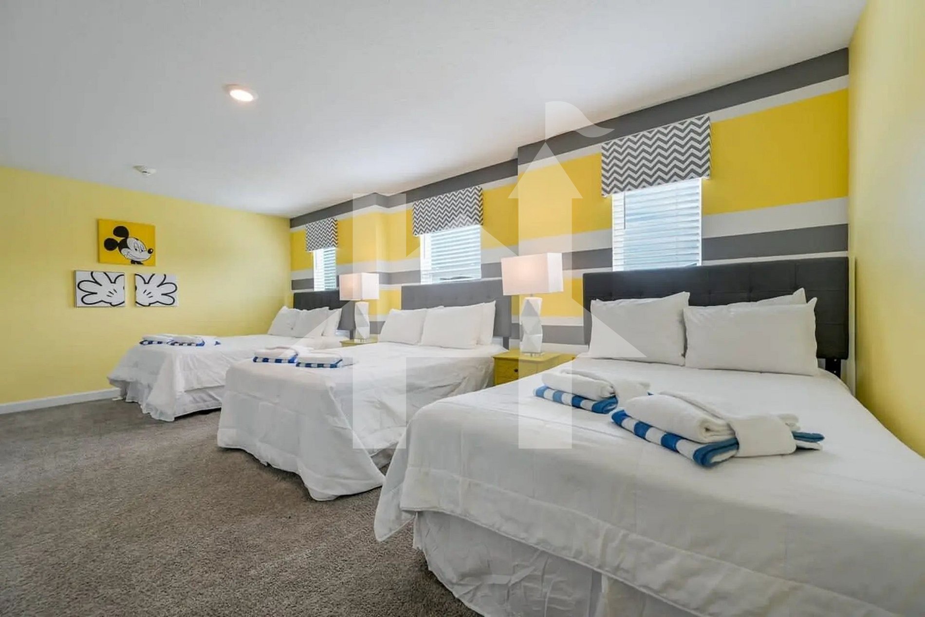 Escape to this spacious 9-bedroom villa in Storey Lake Resort, just 10 minutes from Disney. Ideal for large families or groups, it sleeps up to 23 guests and features a private pool, fun game room, and themed bedrooms. Guests also enjoy access to resort amenities including a lazy river, splash pad, and tiki bar. The perfect blend of comfort, entertainment, and location for an unforgettable Orlando getaway.