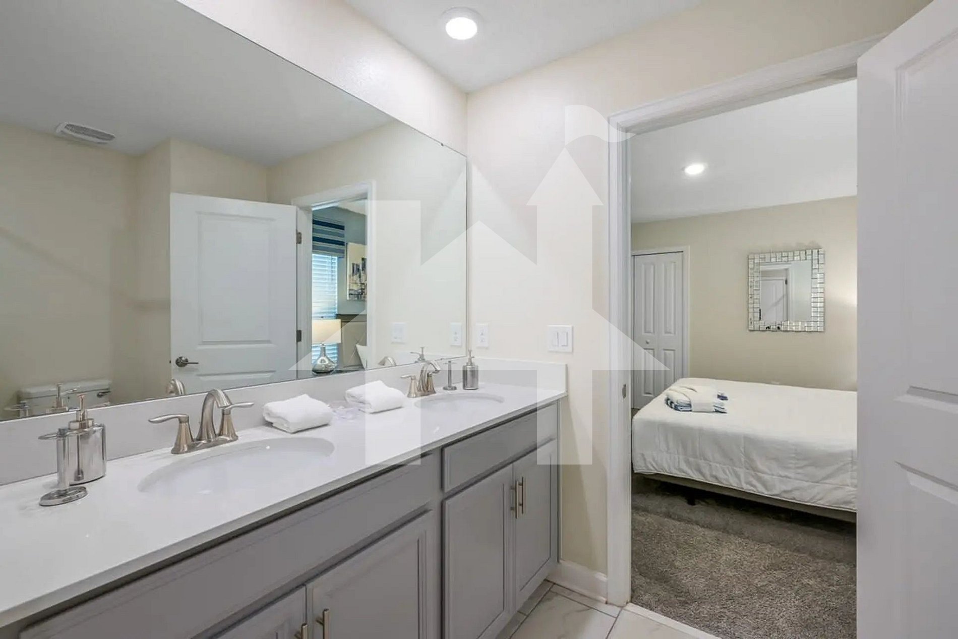 Guests have full access to the house and resort common areas, including the clubhouse with resort-style pool, lazy river, water slides, tiki bar, fitness center, mini-golf, and more.
