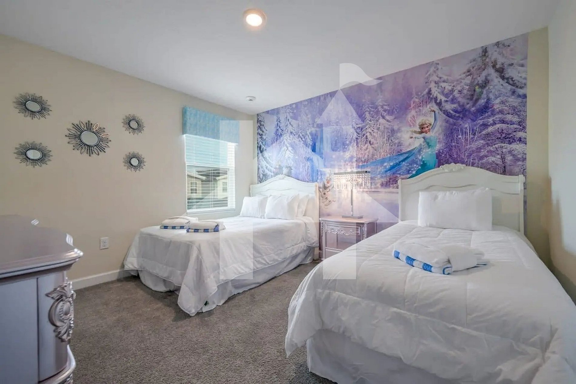 Escape to this spacious 9-bedroom villa in Storey Lake Resort, just 10 minutes from Disney. Ideal for large families or groups, it sleeps up to 23 guests and features a private pool, fun game room, and themed bedrooms. Guests also enjoy access to resort amenities including a lazy river, splash pad, and tiki bar. The perfect blend of comfort, entertainment, and location for an unforgettable Orlando getaway.