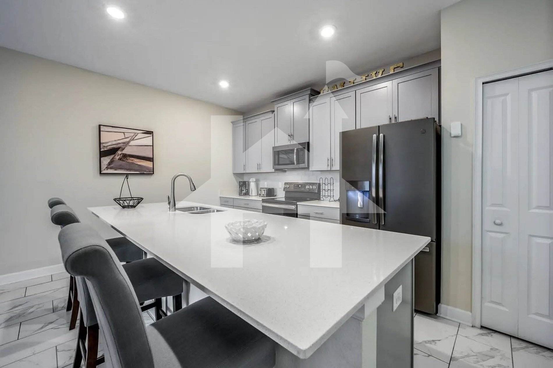 Step into this bright and spacious 4-bedroom, 3-bathroom townhome at the exclusive Champions Gate Resort, designed to comfortably accommodate families and groups. The open-plan living area integrates a cozy lounge with Smart TV, a dining space for family meals, and a fully equipped kitchen with modern appliances, cookware, and utensils—perfect for preparing everything from snacks to full dinners.