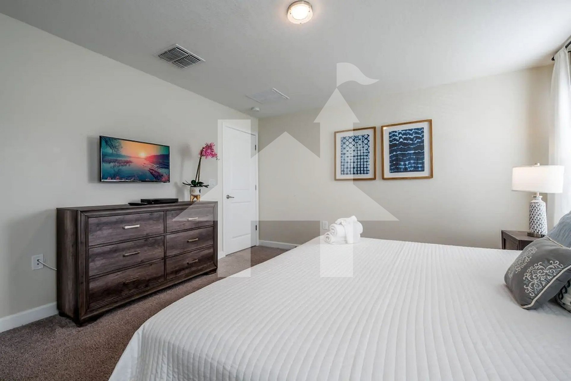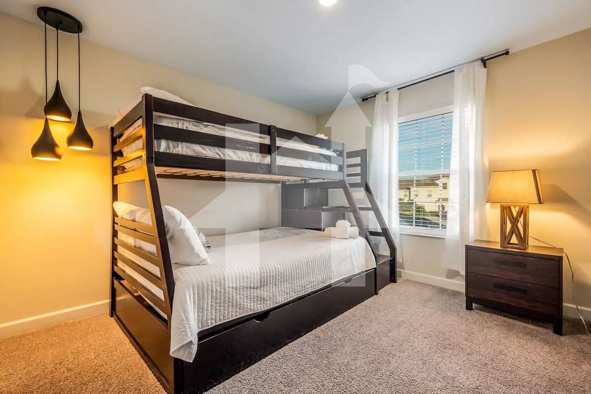Indulge in the charm of this modern 4-bedroom, 3-bath townhome at Champions Gate Resort, accommodating up to 11 guests. Perfect for families, it features spacious living areas, a fully equipped kitchen, and themed bedrooms for kids. Relax in your private pool or explore resort amenities including pools, lazy river, waterslides, fitness center, golf course, and more. Ideally located just 20 minutes from Disney and close to Universal, SeaWorld, dining, and shopping.