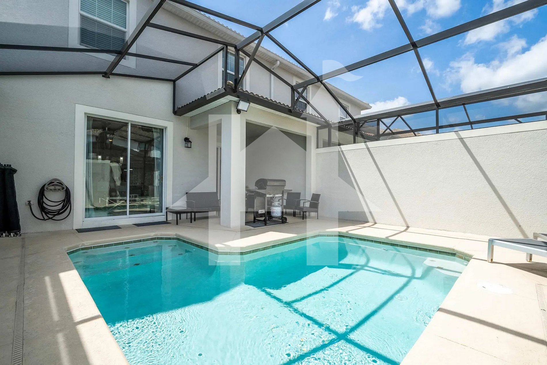Step outside to the private screened-in patio and enjoy your heatable pool, perfect for refreshing dips during the day or relaxing evenings after the parks. A BBQ grill is also available for outdoor dining.