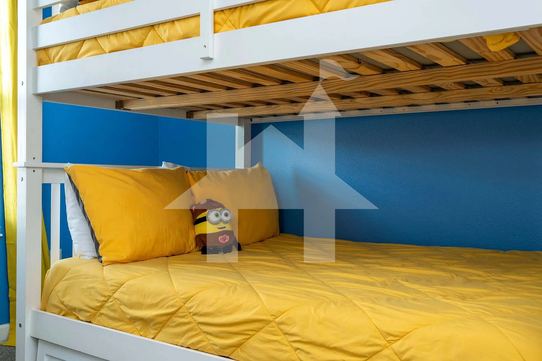 Themed Minions Room: 2 Full beds + 1 Twin trundle bed — colorful and playful