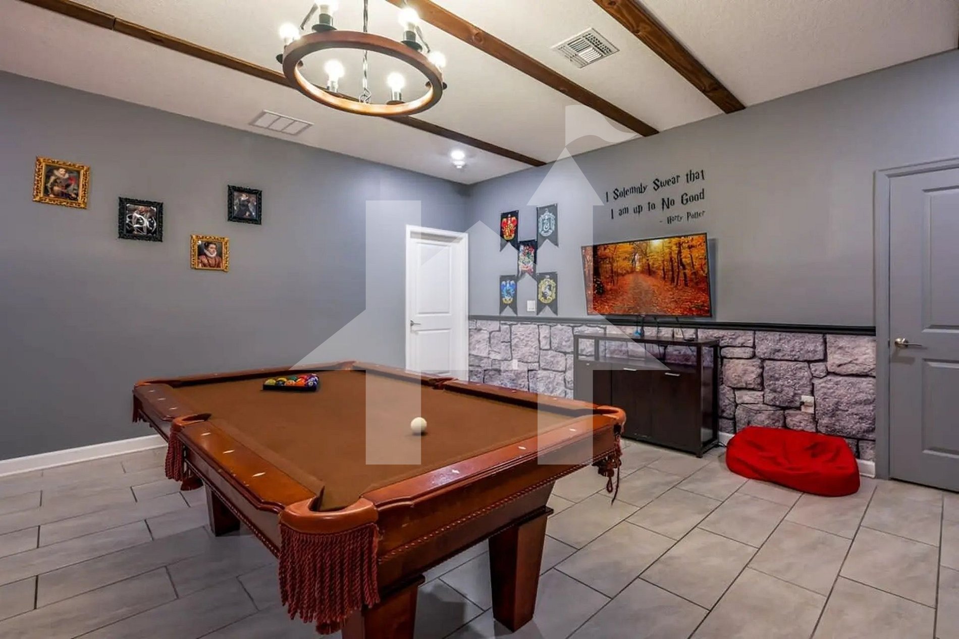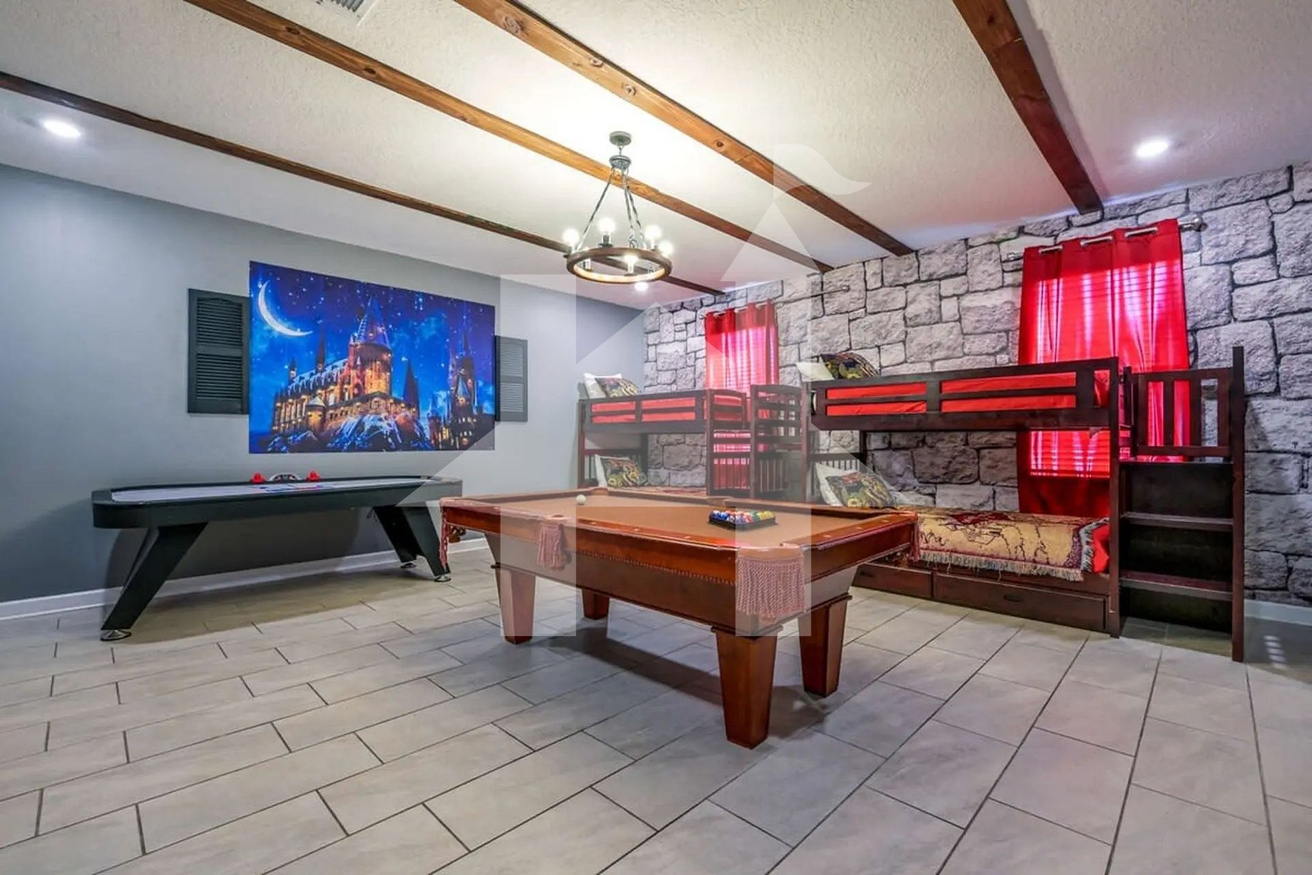 - Themed Harry Potter Game Room: A favorite for kids and adults alike, with immersive decor and two bunk beds (four additional single beds)