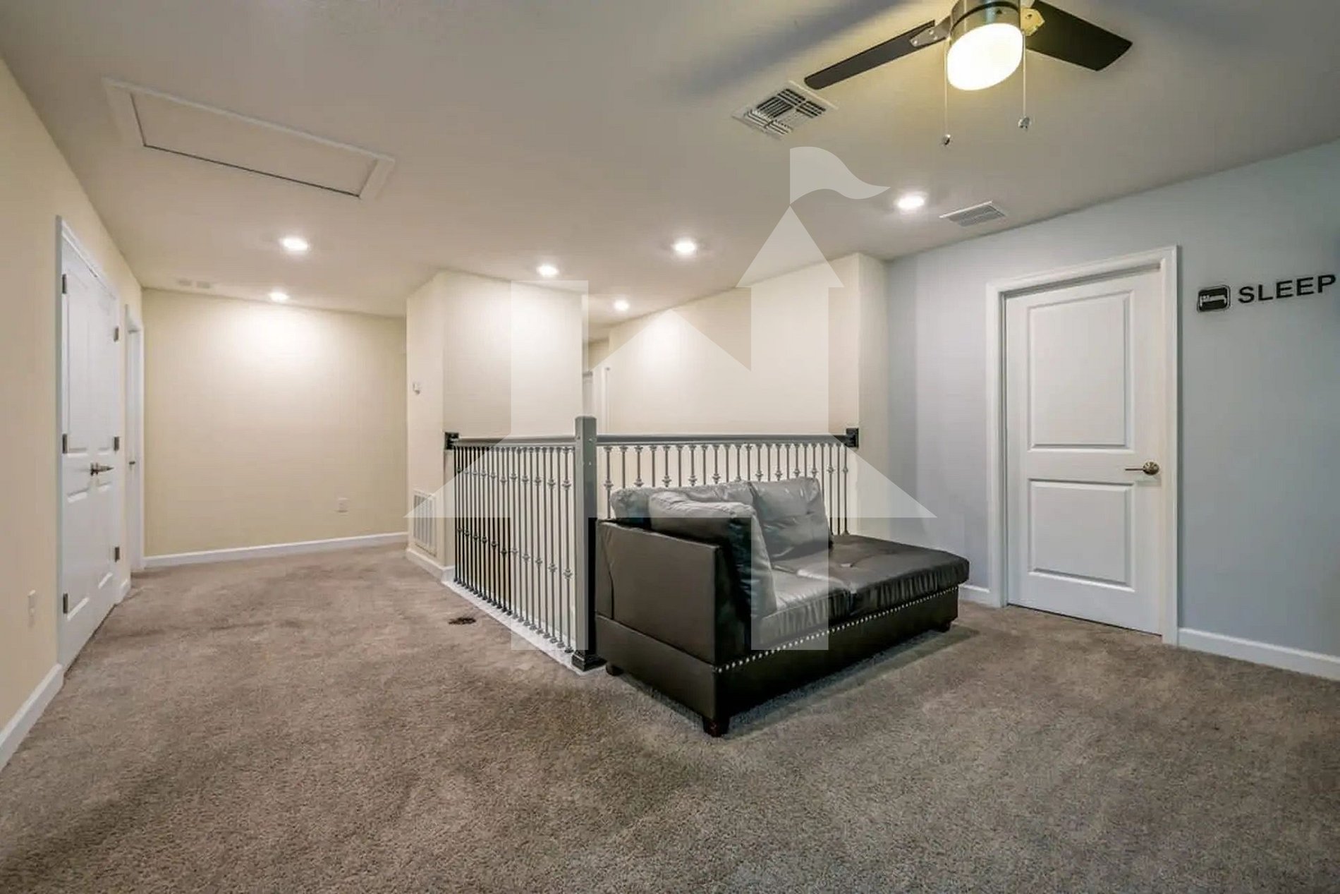 Comfortable upstairs loft and seating areas for games, reading, or relaxation