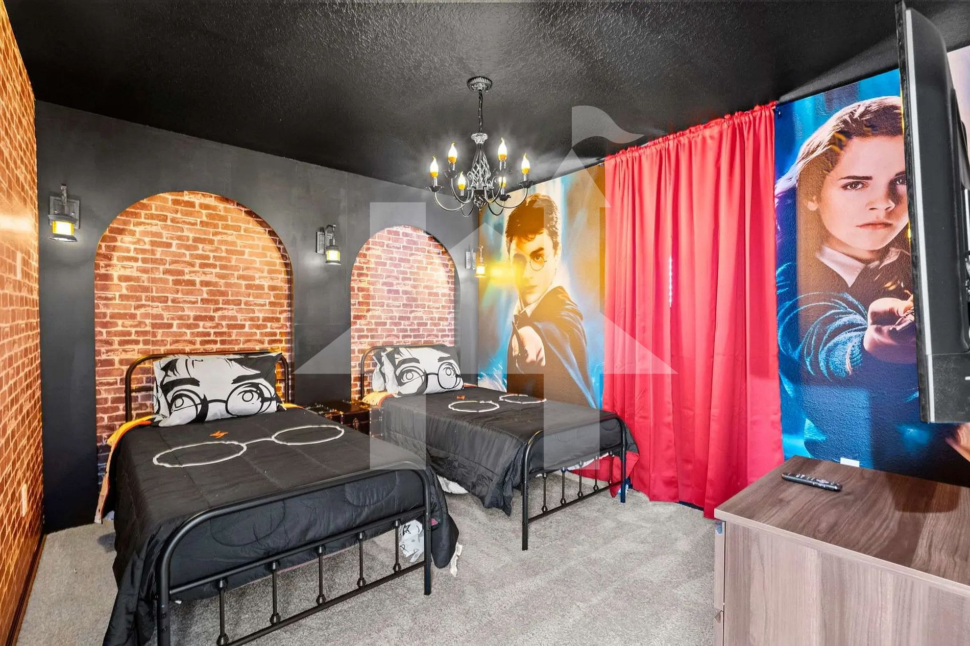 Harry Potter, Avatar, Little Mermaid, and Toy Story-themed rooms (each with 2 twin beds)