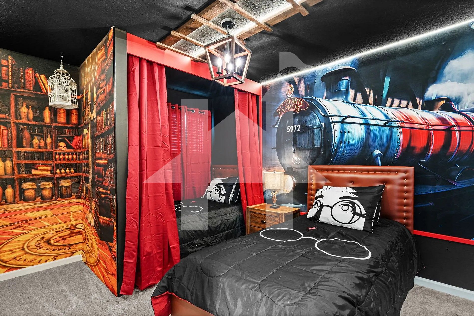 • Bedroom 6 (Harry Potter Room): 2 twin beds, private bathroom