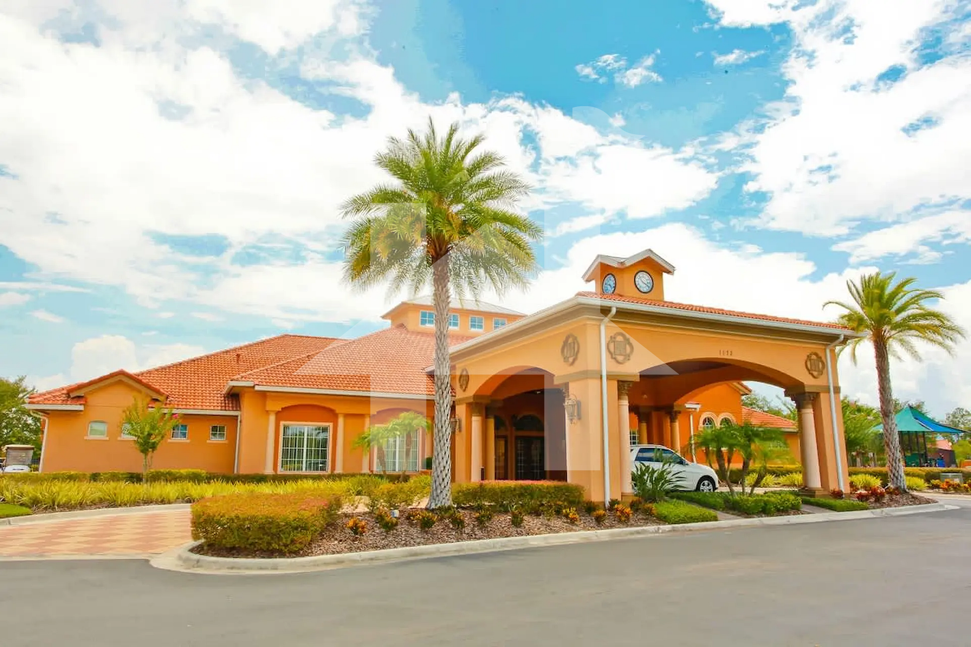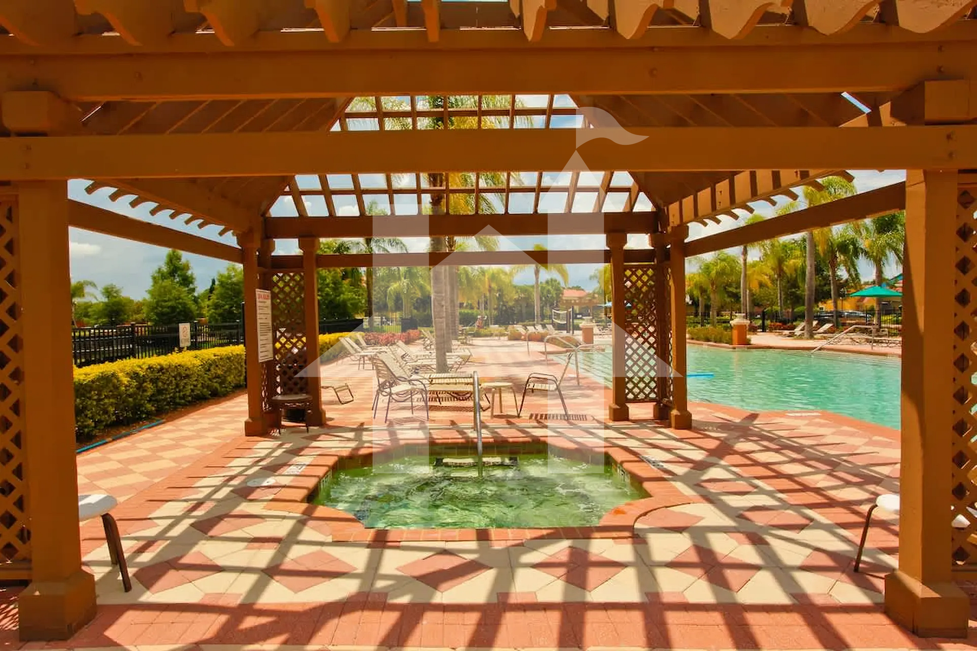 Amenities include a community pool (not heated), jacuzzi, internet café, arcade, sports courts, TV room, walking trails, playground, and stunning Italian-style gardens. The peaceful and safe environment makes it the perfect place to unwind after exciting days at the parks.