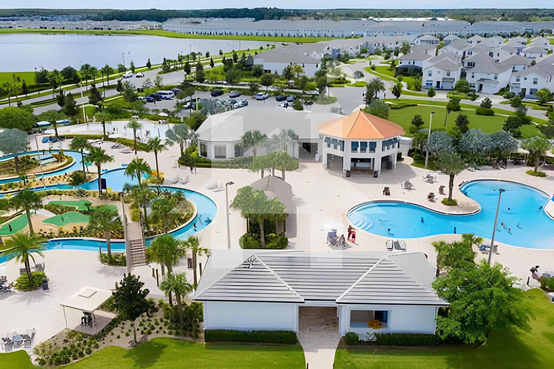 Resort-style pools with lazy river & water slides