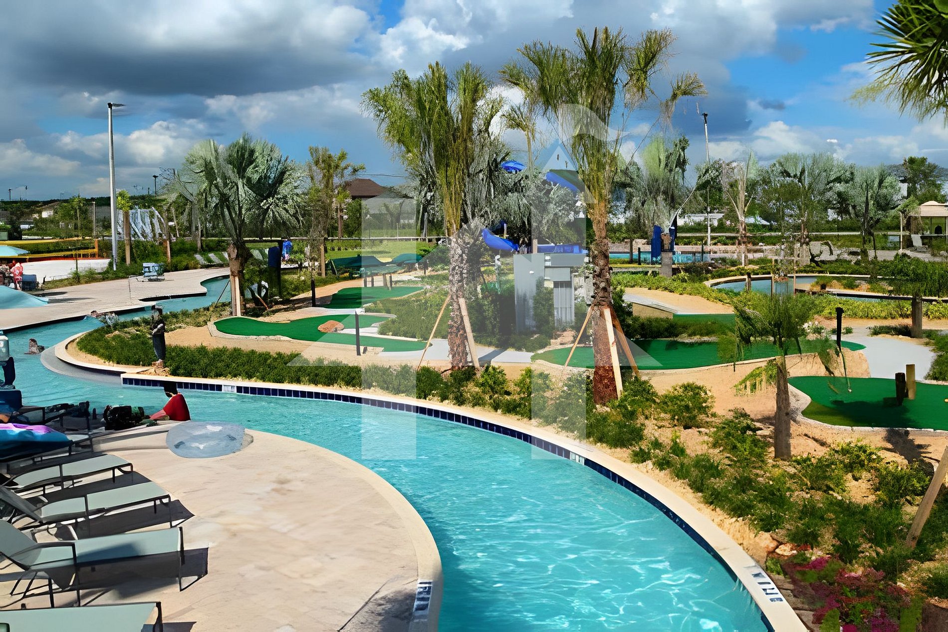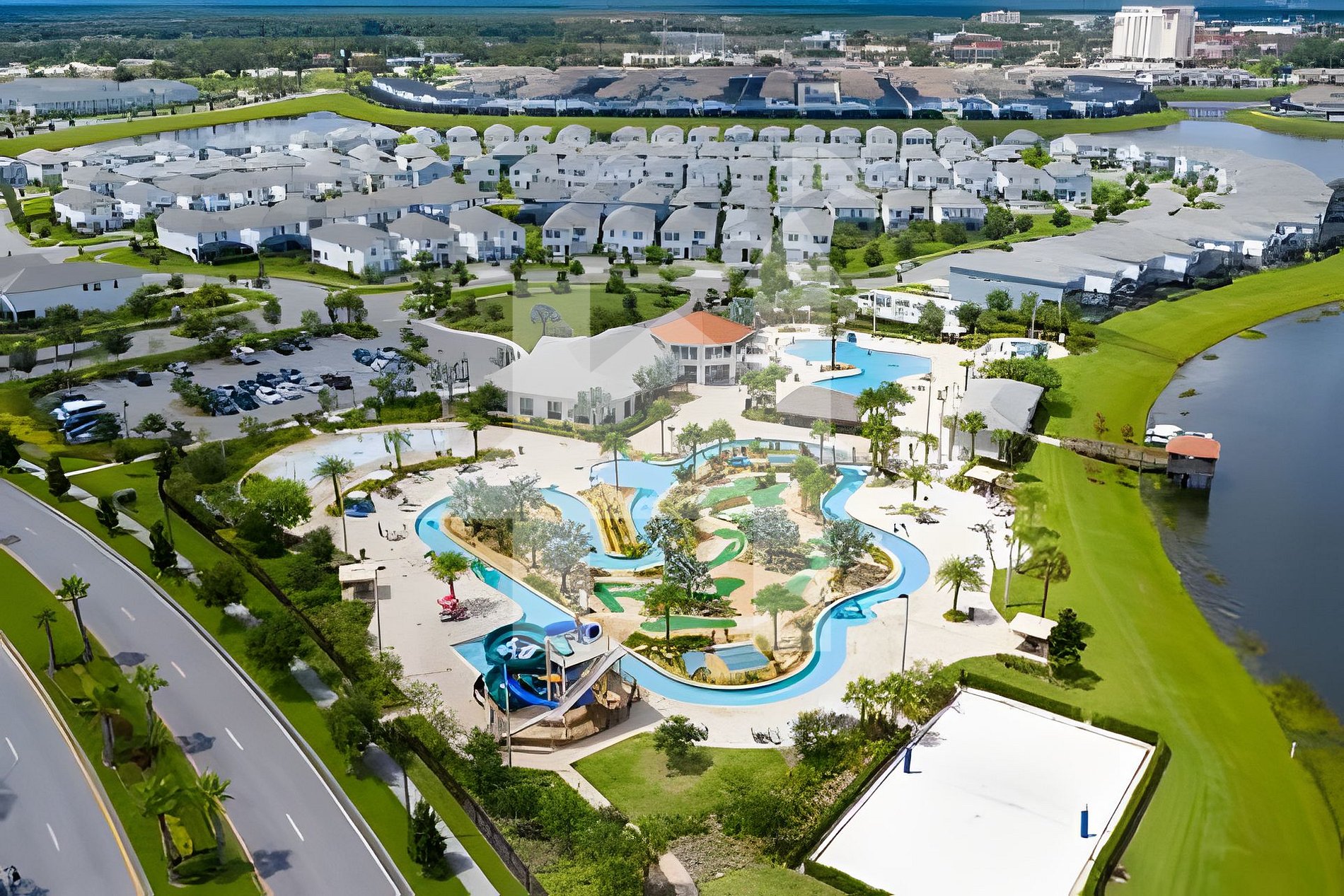 Resort-style pools with lazy river & water slides