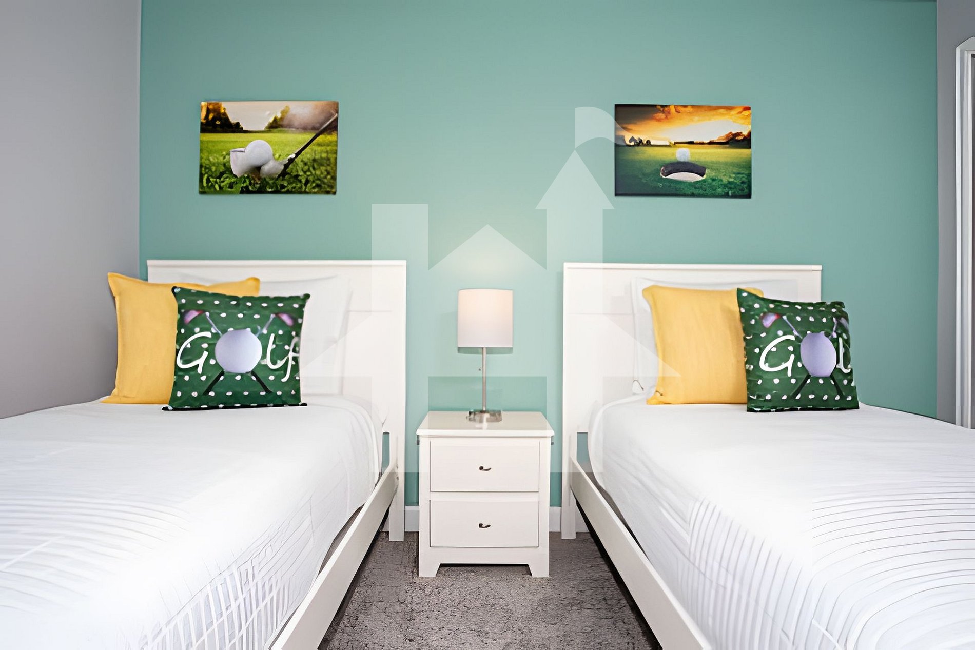 -2nd Floor: Golf-themed bedroom with 2 twin beds