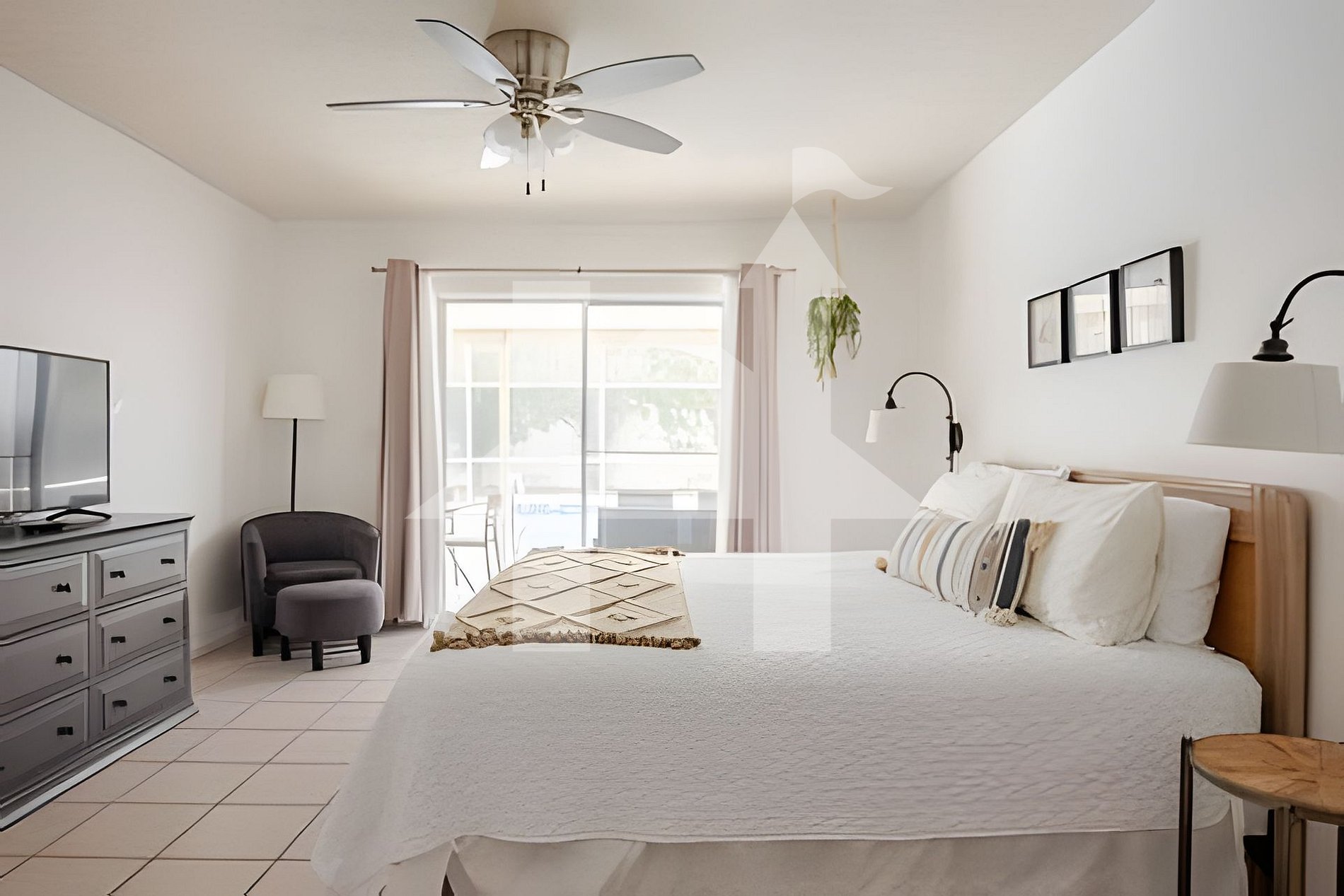 Bedroom 1: King bed, TV.