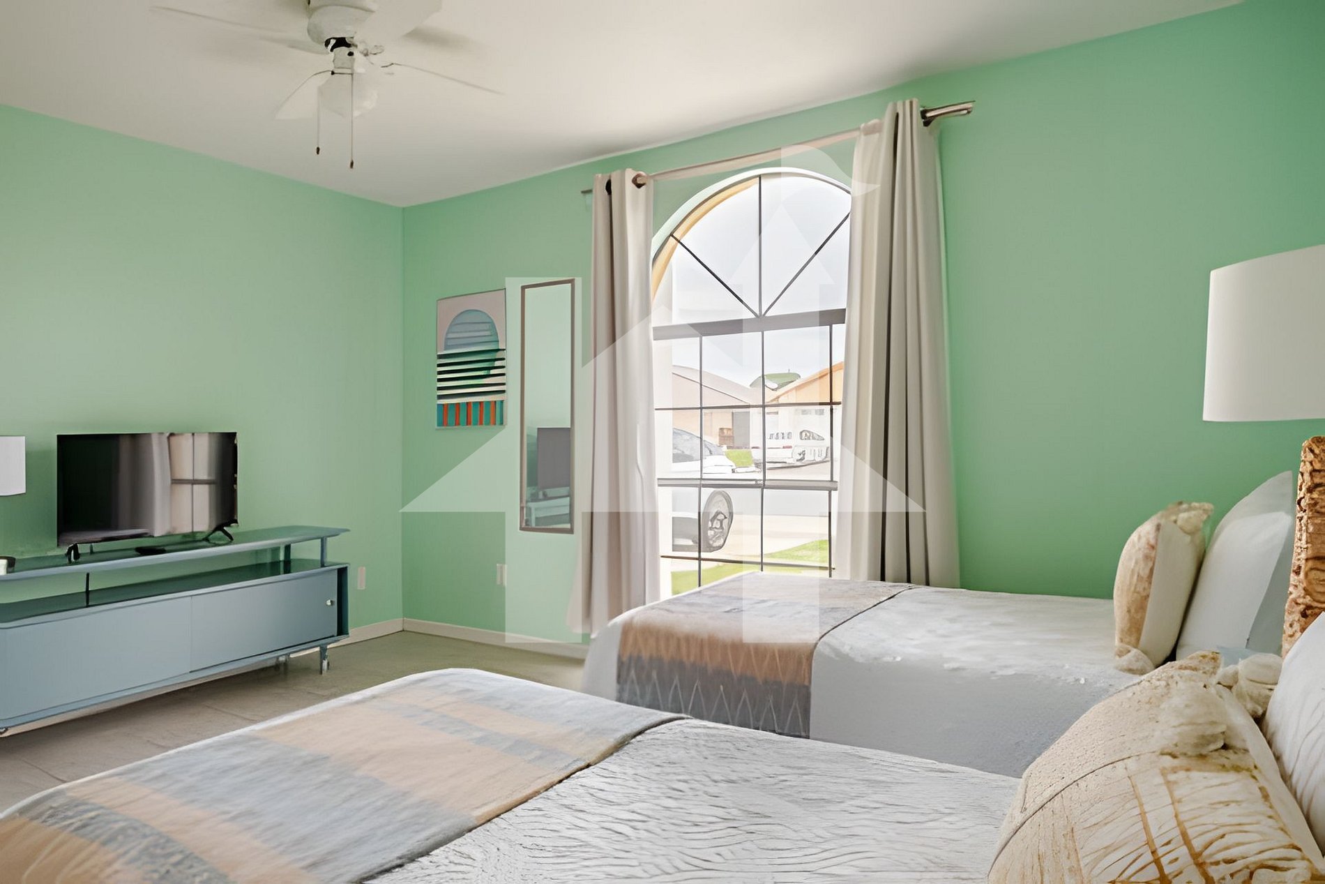 Bedroom 3: Two Twin beds, TV.