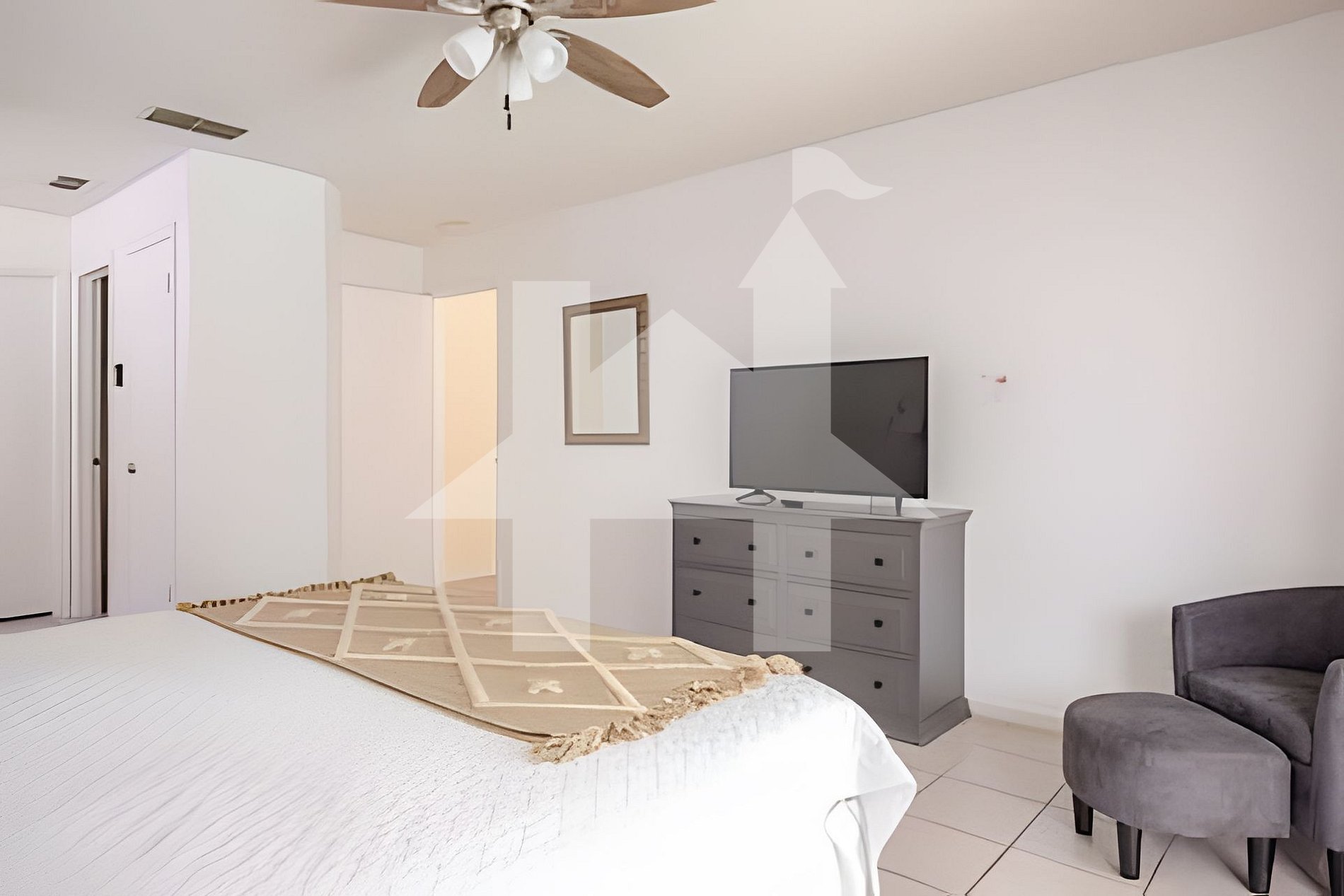 Bedroom 1: King bed, TV.