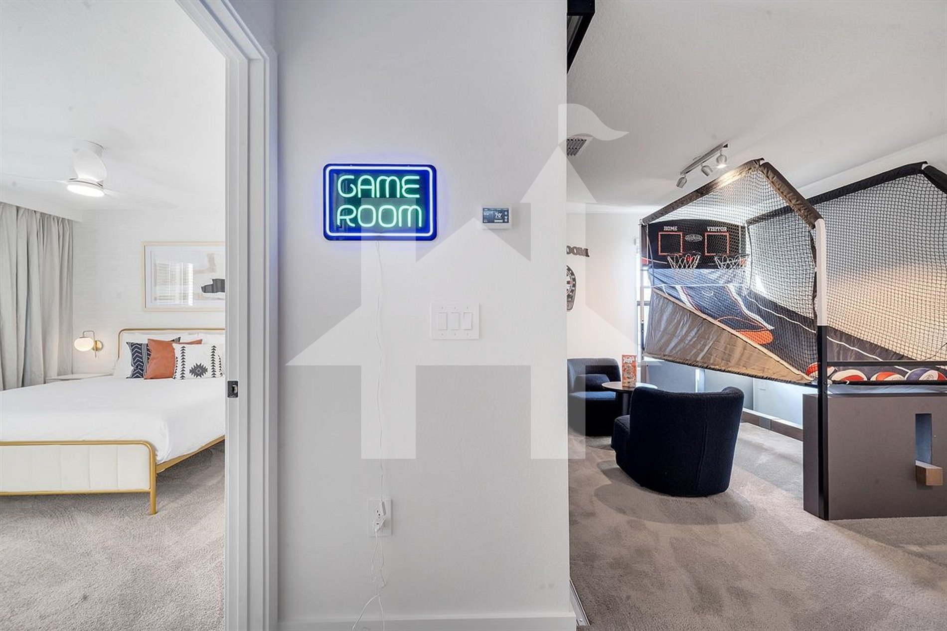 Aproveite sua estadia nesta charmosa casa de 3 quartos e 3 banheiros no moderno condomínio The Hub, em Central Florida. Com cozinha aberta, sala aconchegante, loft divertido com basquete e Wi-Fi rápido, é perfeita para famílias e grupos. O condomínio oferece piscina aquecida, academia, área de churrasco e espaços de trabalho. Localização estratégica, a poucos minutos dos parques de Orlando e principais atrações.