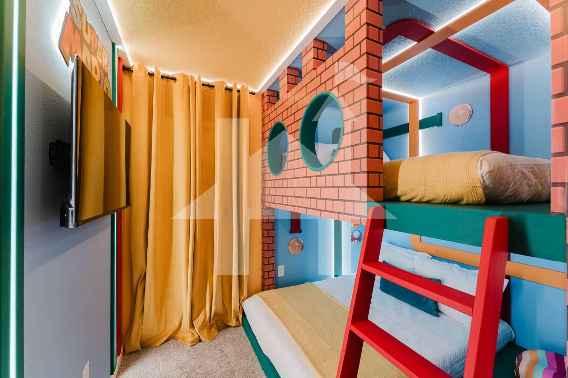 Quarto 4: Beliche Full + Full (tema Mario, banheiro compartilhado)