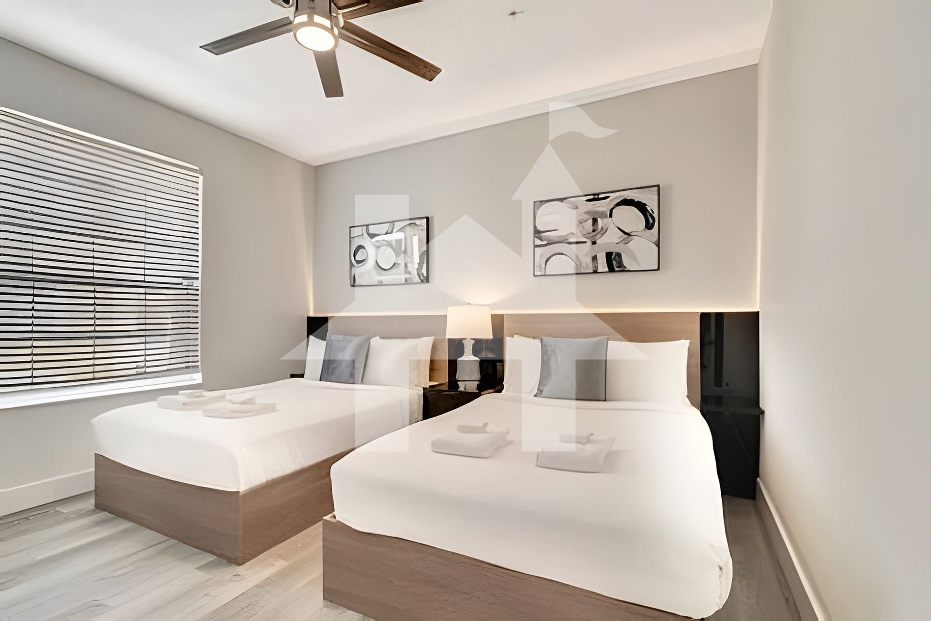 Quarto Full: 2 camas Full, Smart TV e banheiro compartilhado.