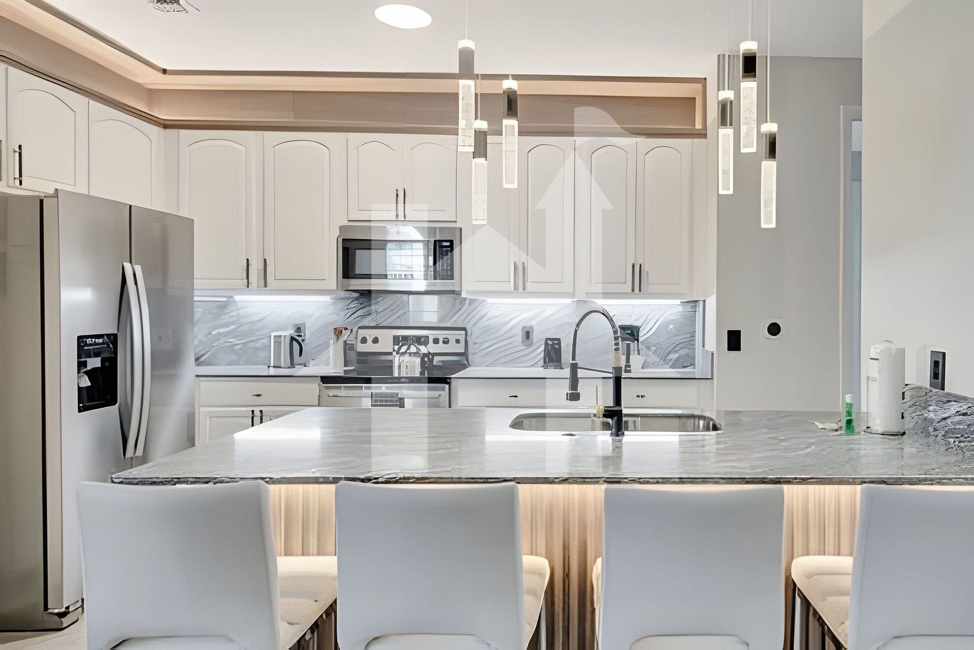 Ambiente Social A sala de estar conta com sofá espaçoso para 8 pessoas, Smart TV e acesso à varanda telada. A sala de jantar acomoda até 12 pessoas, além de 4 banquetas no balcão. A cozinha está totalmente equipada com utensílios e eletrodomésticos modernos.