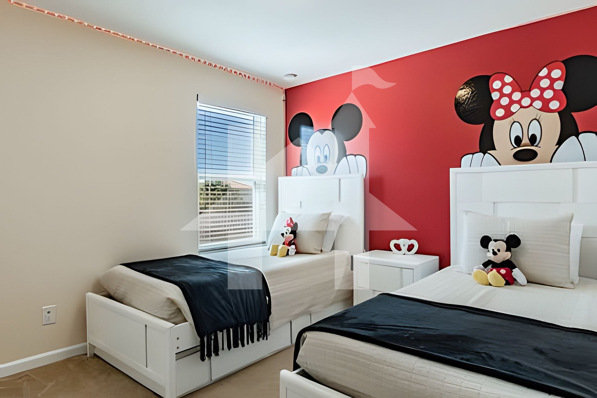 Mickey & Minnie: 2 camas de solteiro, compartilhando banheiro completo.