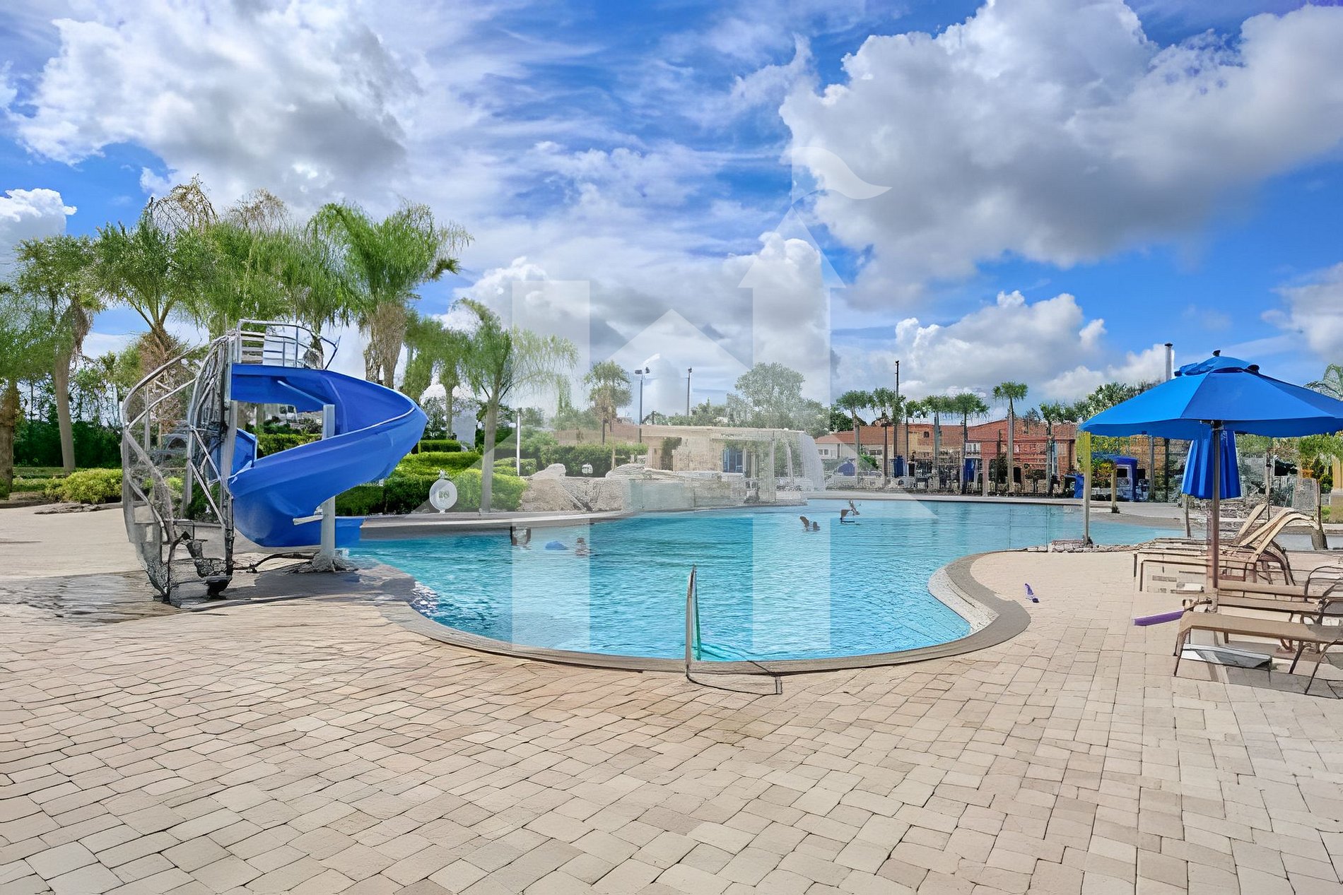 O Paradise Palms oferece um clubhouse de 9.500 pés² com piscina gigante, jacuzzi, toboágua, tiki bar, cinema, academia, mercado, sala de jogos, quadras de basquete, tênis e vôlei. Perfeito para dias tranquilos entre os parques.