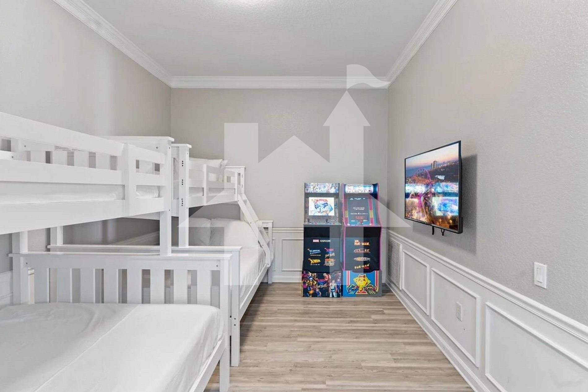 Amplo apê de 4 quartos no Vista Cay Resort, ideal para famílias e grupos. Conta com 2 quartos king, 1 com 2 camas queen e 1 com beliches divertidos. Cozinha moderna, sala integrada e jogos de arcade. Resort com piscinas, academia, trilhas, bar, cinema e segurança 24h. Localização perfeita: a pé do Convention Center, perto da Universal, SeaWorld, ICON Park e a poucos minutos da Disney e aeroporto.