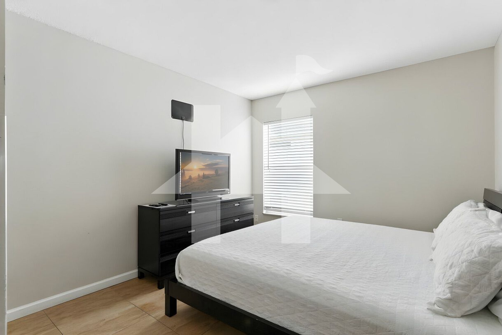 -Suíte Master 1: Cama king-size, TV, closet e banheiro privativo