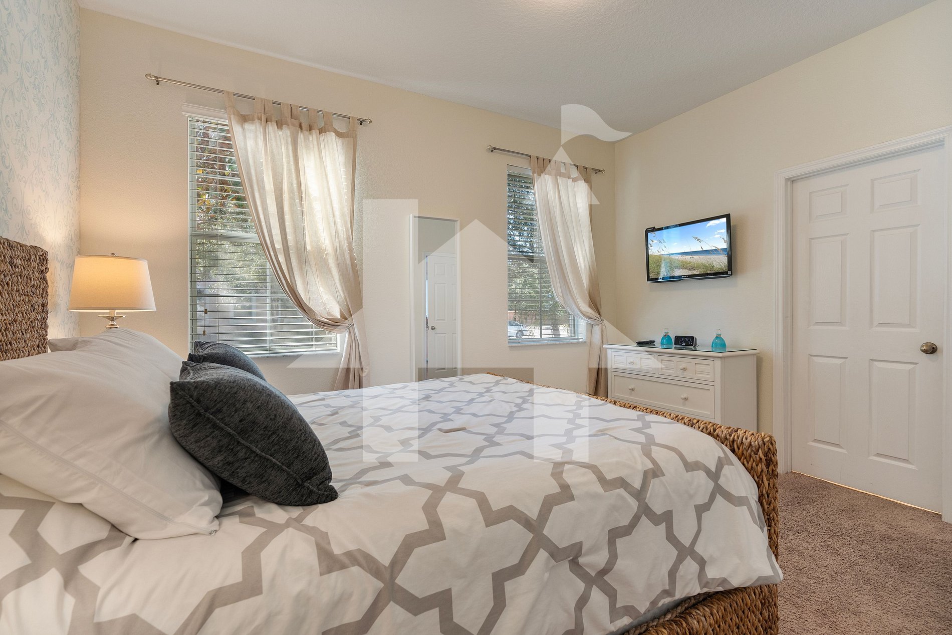 - Suíte Master com cama King, TV, closet e banheiro privativo.