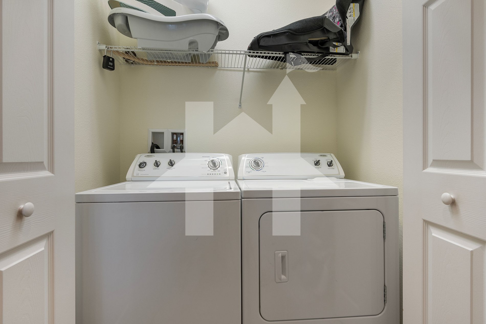 Lavadora, secadora, ferro e tábua de passar