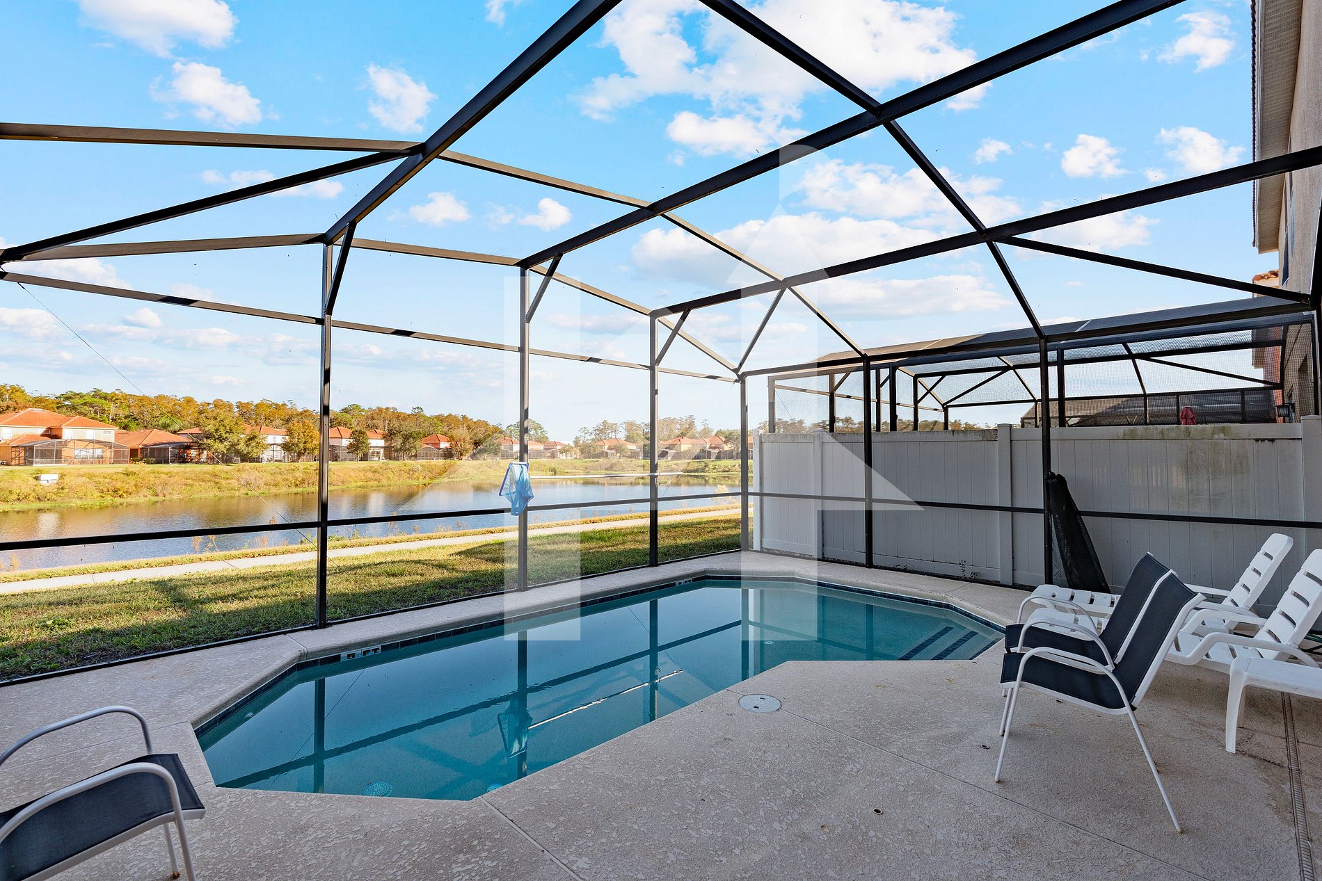 Desfrute da piscina privativa com vista para o lago, totalmente cercada e com opção de aquecimento (US$ 40,00/dia, mínimo 3 dias).