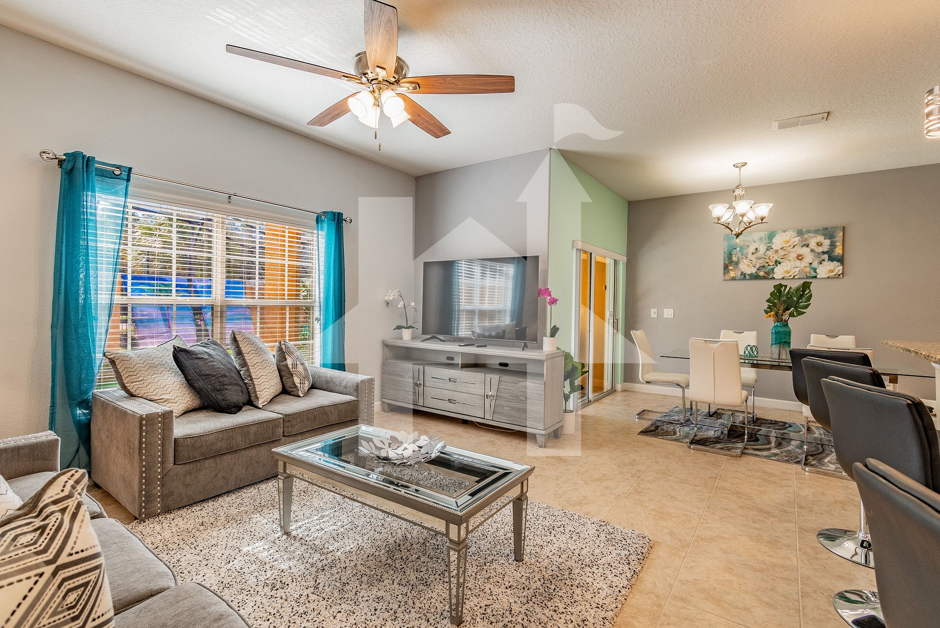 Localizada no seguro Paradise Palms Resort, esta espaçosa casa de 4 quartos e 3 banheiros está a apenas 15 minutos da Disney. Com piscina privativa aquecida, quartos temáticos e ambientes integrados, é perfeita para famílias e grupos. Caminhe até o clubhouse e aproveite tênis, basquete, vôlei, cinema, sala de jogos, piscina com escorregador, jacuzzi, academia e muito mais — tudo sem taxa de resort.