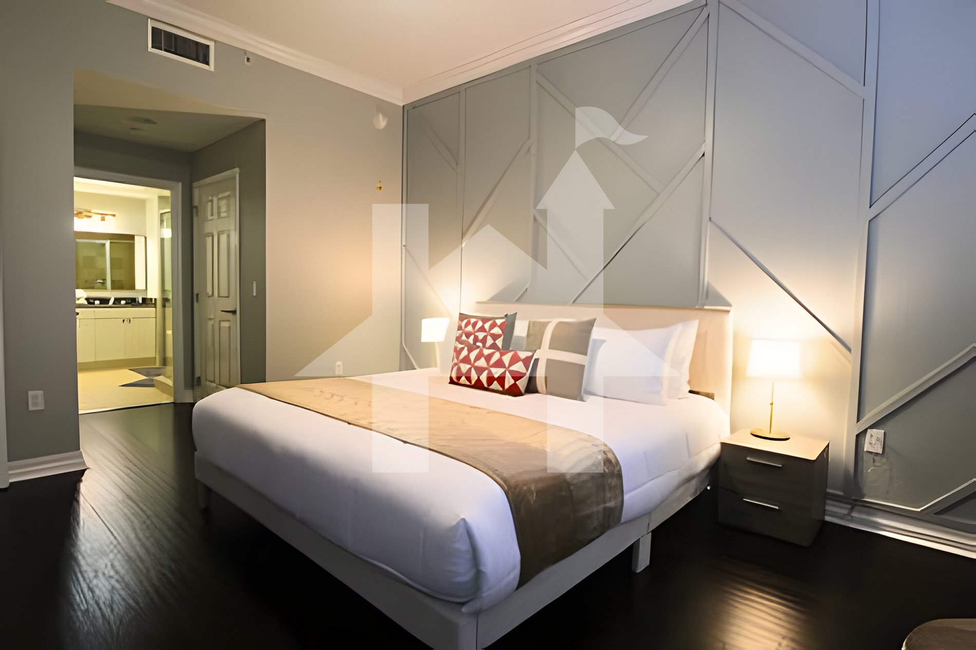 • Suíte Master: cama king + banheiro privativo