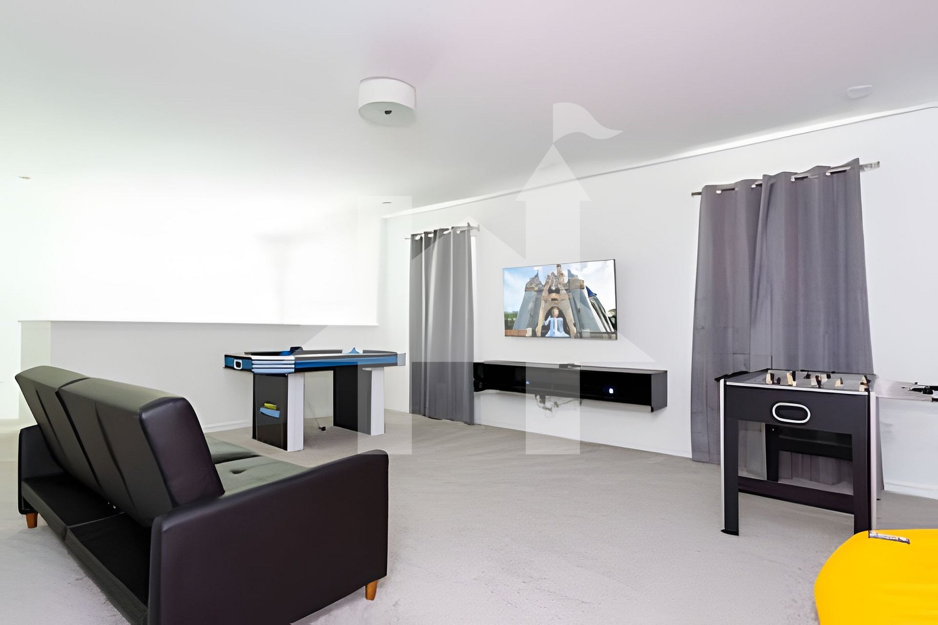 - Loft com pebolim, air hockey, sofá e TV