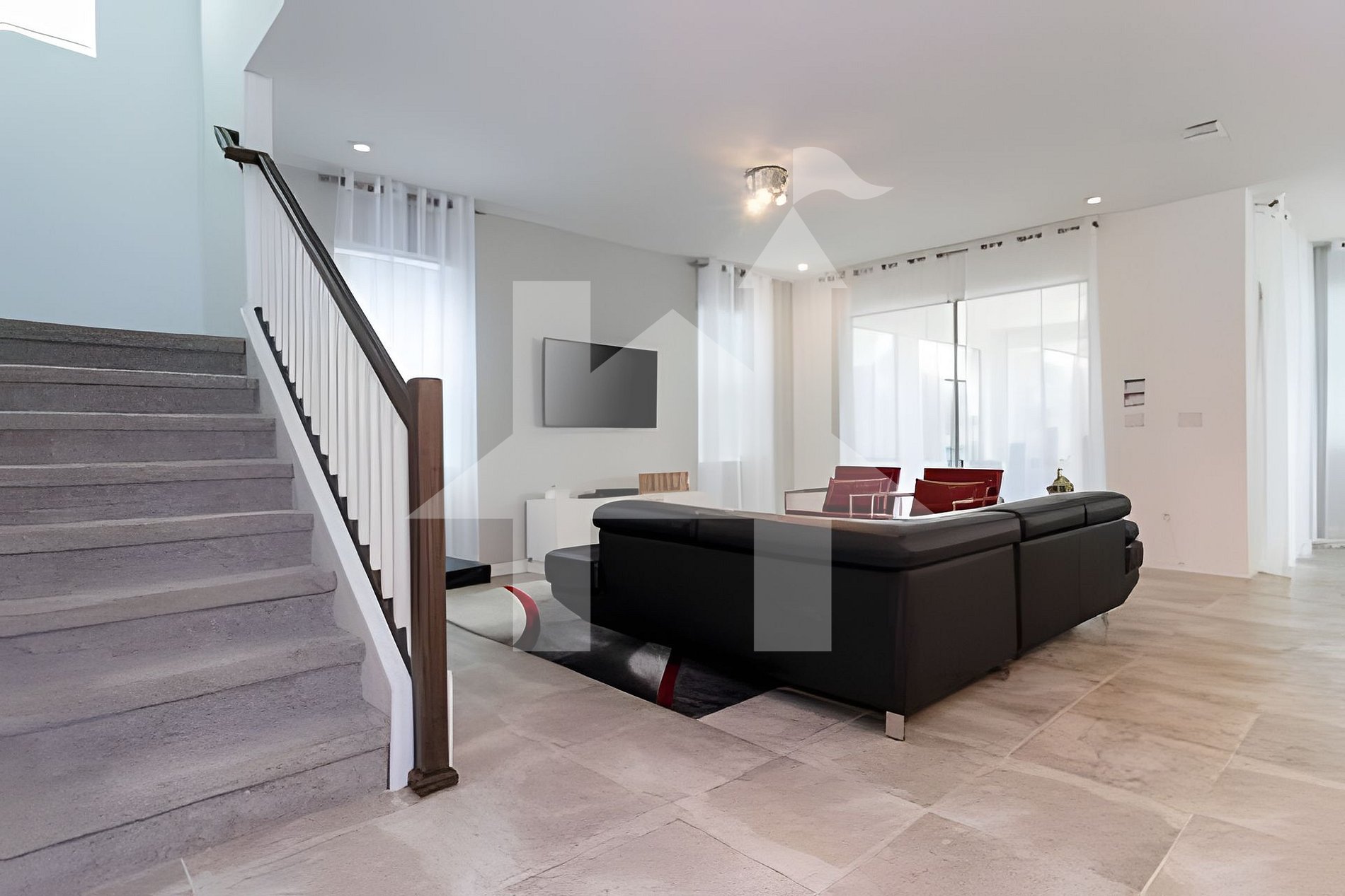 - Sala integrada com sofás confortáveis e Smart TV