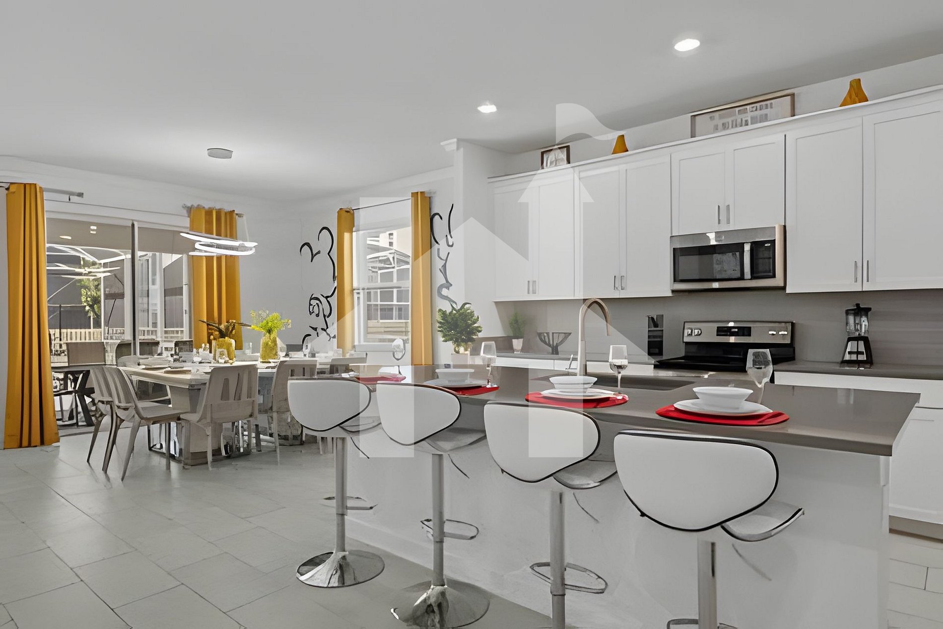 Bem-vindo a uma casa HoliStays, onde cada estadia é perfeita. Gerenciada por nossa equipe local especializada em casas de férias na região da Disney, garantimos limpeza impecável, suporte 24h em vários idiomas, concierge gratuito e conforto estilo resort do check-in ao check-out. Mergulhe em um mundo mágico nesta casa temática com 6 quartos e 5 banheiros, localizada no prestigiado Champions Gate Resort. Acomoda até 18 hóspedes com muito conforto, estilo e acesso às comodidades do resort a apenas 20 minutos da Disney! Cada ambiente é inspirado em histórias encantadoras e amadas por todas as idades, com decoração temática do Rei Leão, Encanto, Star Wars, Mickey e um majestoso Castelo da Disney. A área social conta com sala integrada, cozinha equipada e espaço para refeições em família. Distribuição da Casa & Quartos Temáticos - Quarto 1 (Térreo): Tema Rei Leão | 1 cama King | Banheiro privativo - Quarto 2: Tema Mickey Master | 1 cama King | Banheiro privativo - Quarto 3: Castelo da Disney | 1 cama Queen | Banheiro privativo - Quarto 4: Tema Encanto | 2 beliches (4 camas de solteiro) | Banheiro privativo - Quarto 5: Tema Mickey | 1 cama de casal + 1 beliche (2 solteiros) | Banheiro compartilhado - Quarto 6: Tema Star Wars | 1 cama de casal + 1 beliche (2 solteiros) | Banheiro compartilhado Entretenimento & Extras - Sala estilo cinema para noites de filme - Sala de jogos temática Mario Bros - Piscina privativa aquecida com tela de proteção - Churrasqueira: US$ 100 por semana - Aquecimento da piscina: US$ 40 por dia (mínimo de 3 dias) - Wi-Fi de alta velocidade - Ar-condicionado central - Lavadora e secadora - Estacionamento gratuito (incluindo garagem) - Kit de boas-vindas com itens de higiene e cozinha (reposição por conta do hóspede)