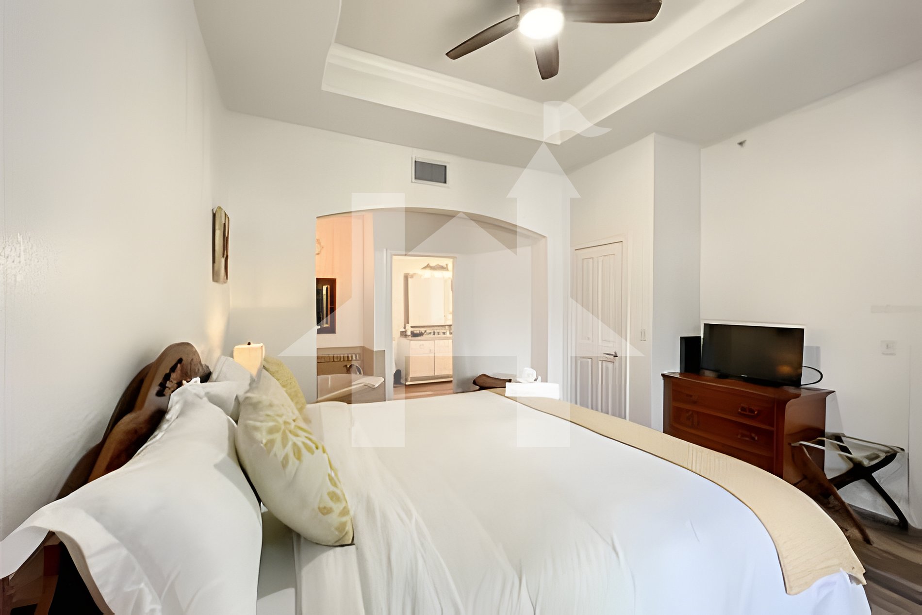 - Dois quartos com camas king, banheiros privativos e smart TVs
