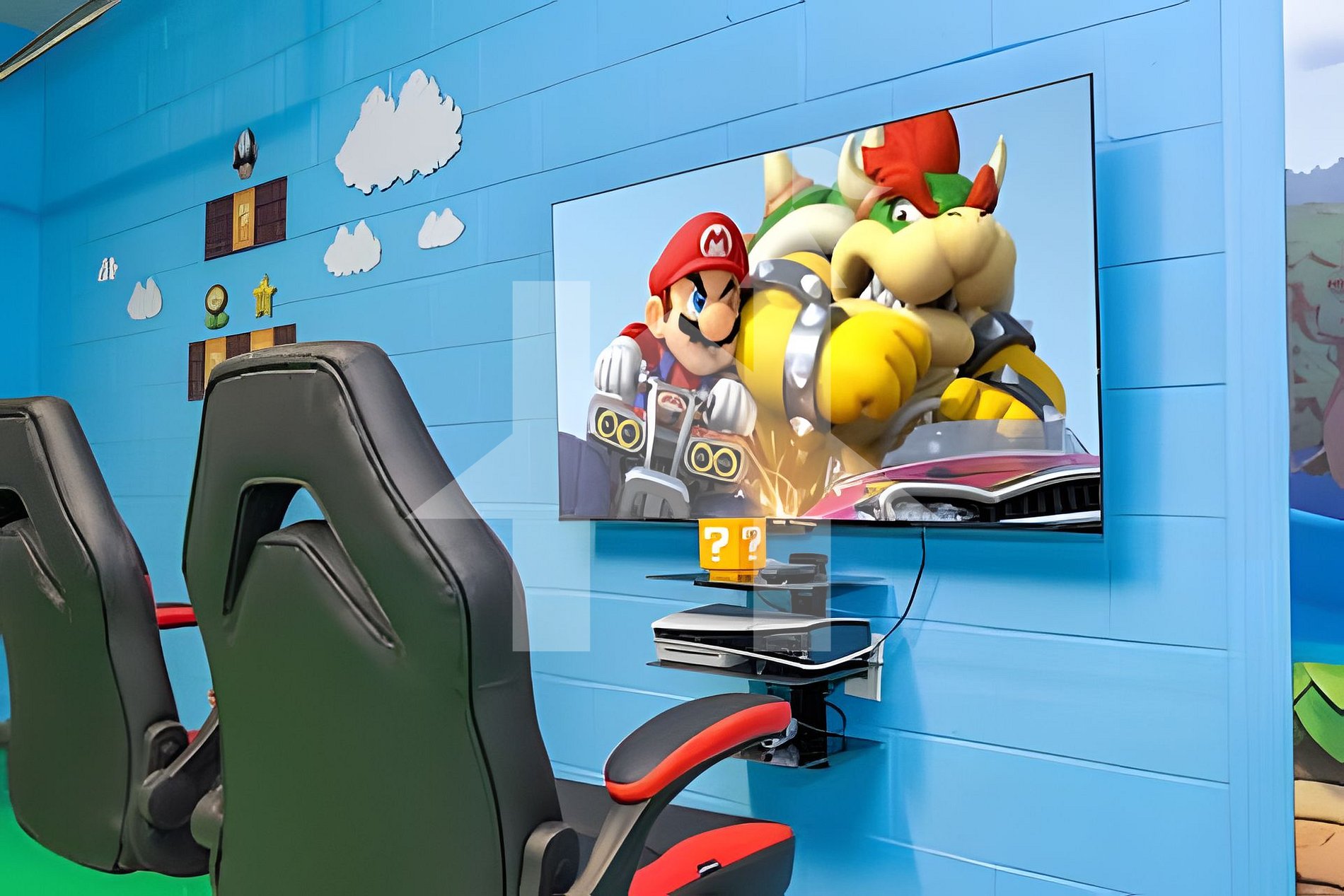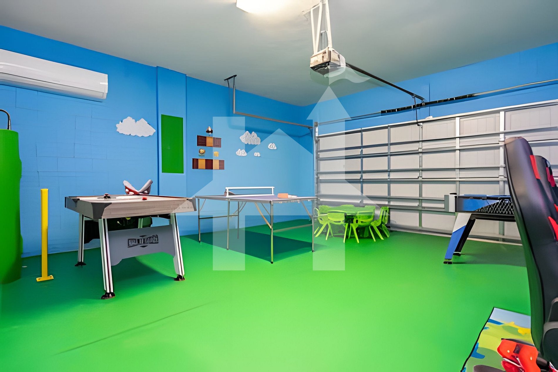 - Diversão & Entretenimento Sala de jogos temática Mario Bros Lounge com sofá-cama e Smart TV Piscina aquecida privativa com TV externa Mesa de jantar externa e churrasqueira (opcional) Aquecimento da piscina: US$ 40/dia (mínimo 3 dias) Churrasqueira: US$ 100/semana