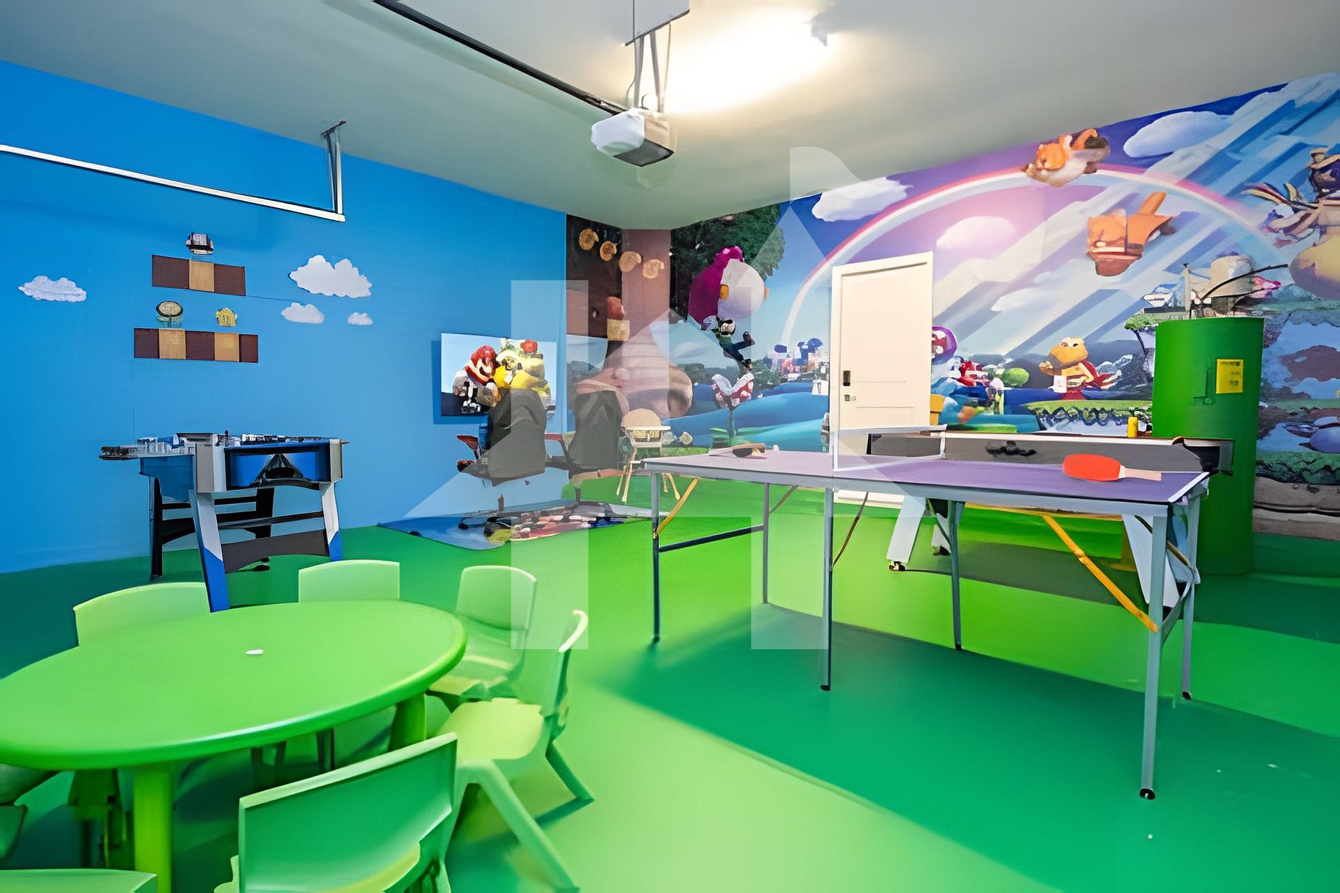 - Diversão & Entretenimento Sala de jogos temática Mario Bros Lounge com sofá-cama e Smart TV Piscina aquecida privativa com TV externa Mesa de jantar externa e churrasqueira (opcional) Aquecimento da piscina: US$ 40/dia (mínimo 3 dias) Churrasqueira: US$ 100/semana