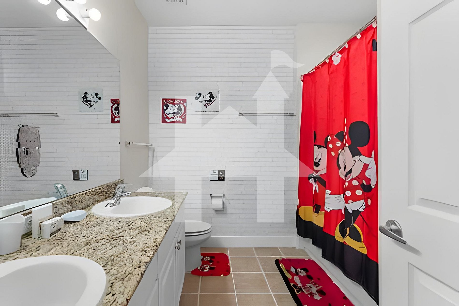 Quarto temático Mickey com duas camas de casa Banheiro completo compartilhado