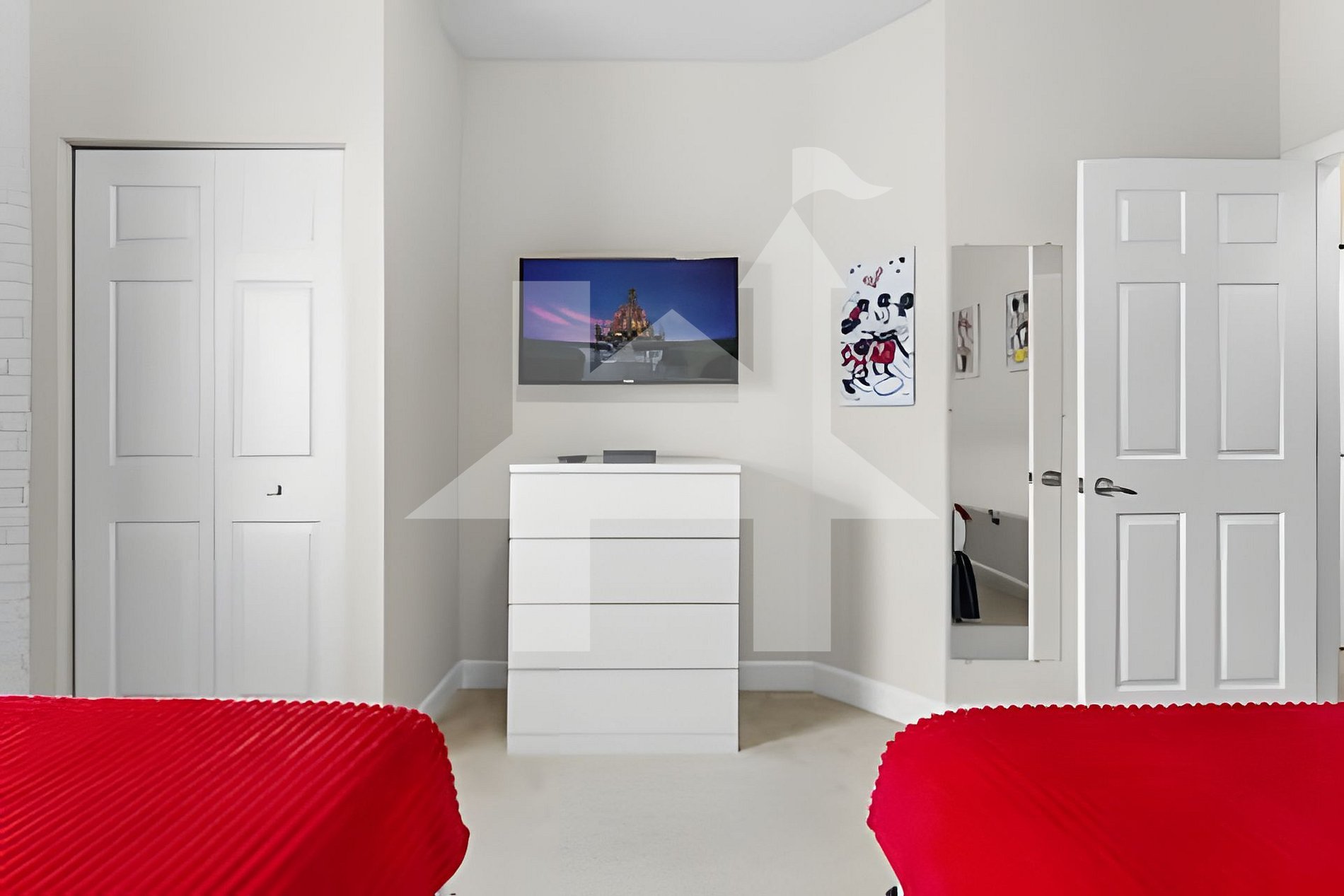 Quarto temático Mickey com duas camas de casa Banheiro completo compartilhado