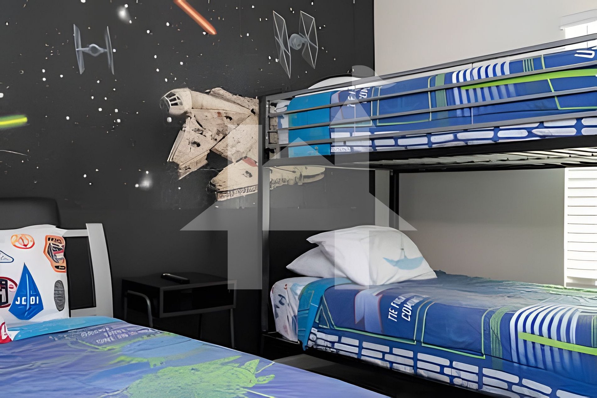 Localizada no Champions Gate Resort, esta casa de 5 quartos e 4 banheiros oferece o equilíbrio ideal entre descanso, lazer e estilo. Ambientes espaçosos, decoração moderna, piscina privativa e quartos com temas divertidos fazem dela a escolha perfeita para férias em família ou entre amigos.