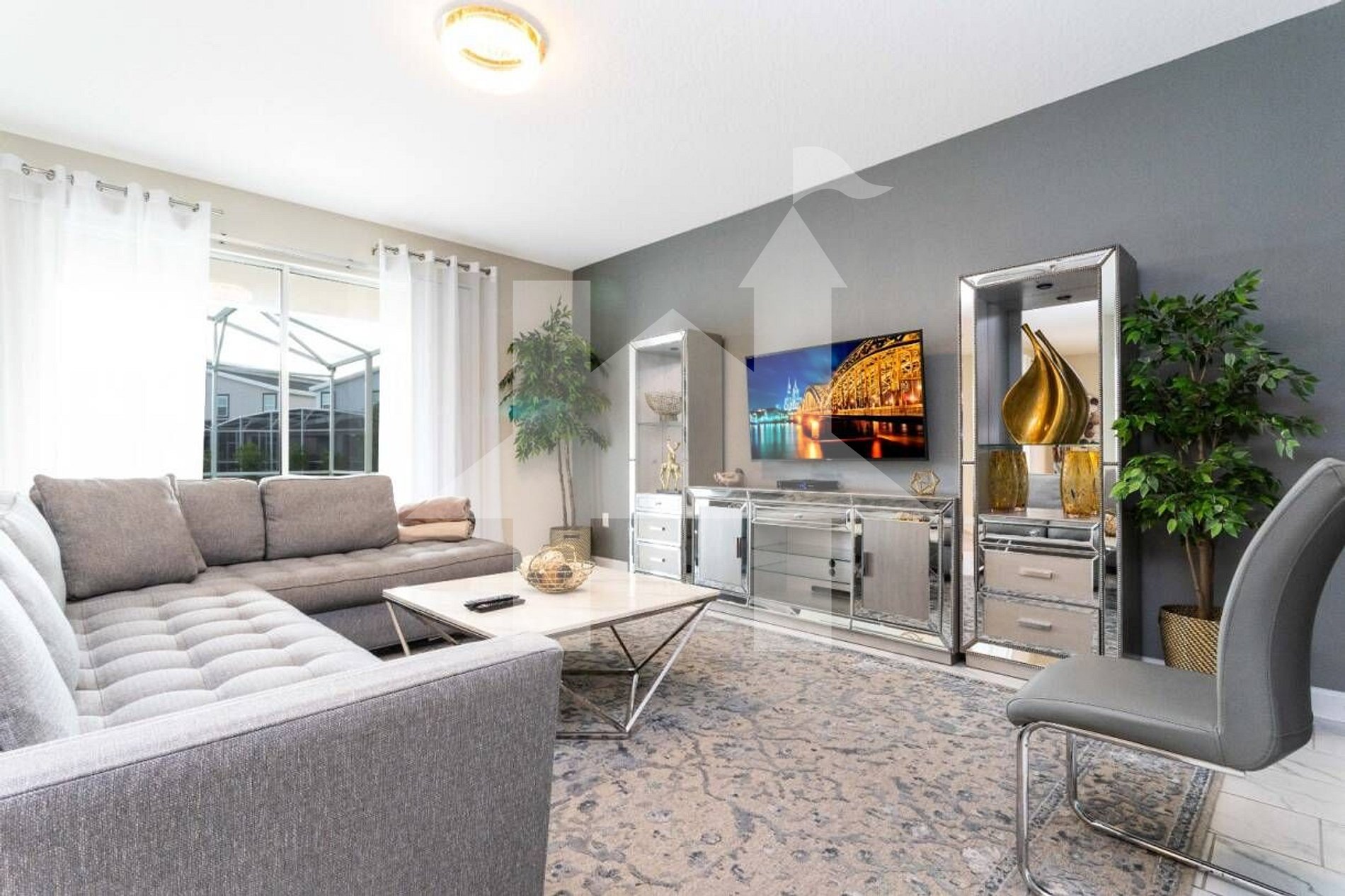 Esta casa elegante com 6 quartos e 5 banheiros fica no condomínio Champions Gate, a apenas 20km do Walt Disney World. Com espaços amplos e integrados, cozinha completa e área externa com piscina e spa privativos, é perfeita para relaxar após um dia de aventuras nos parques.