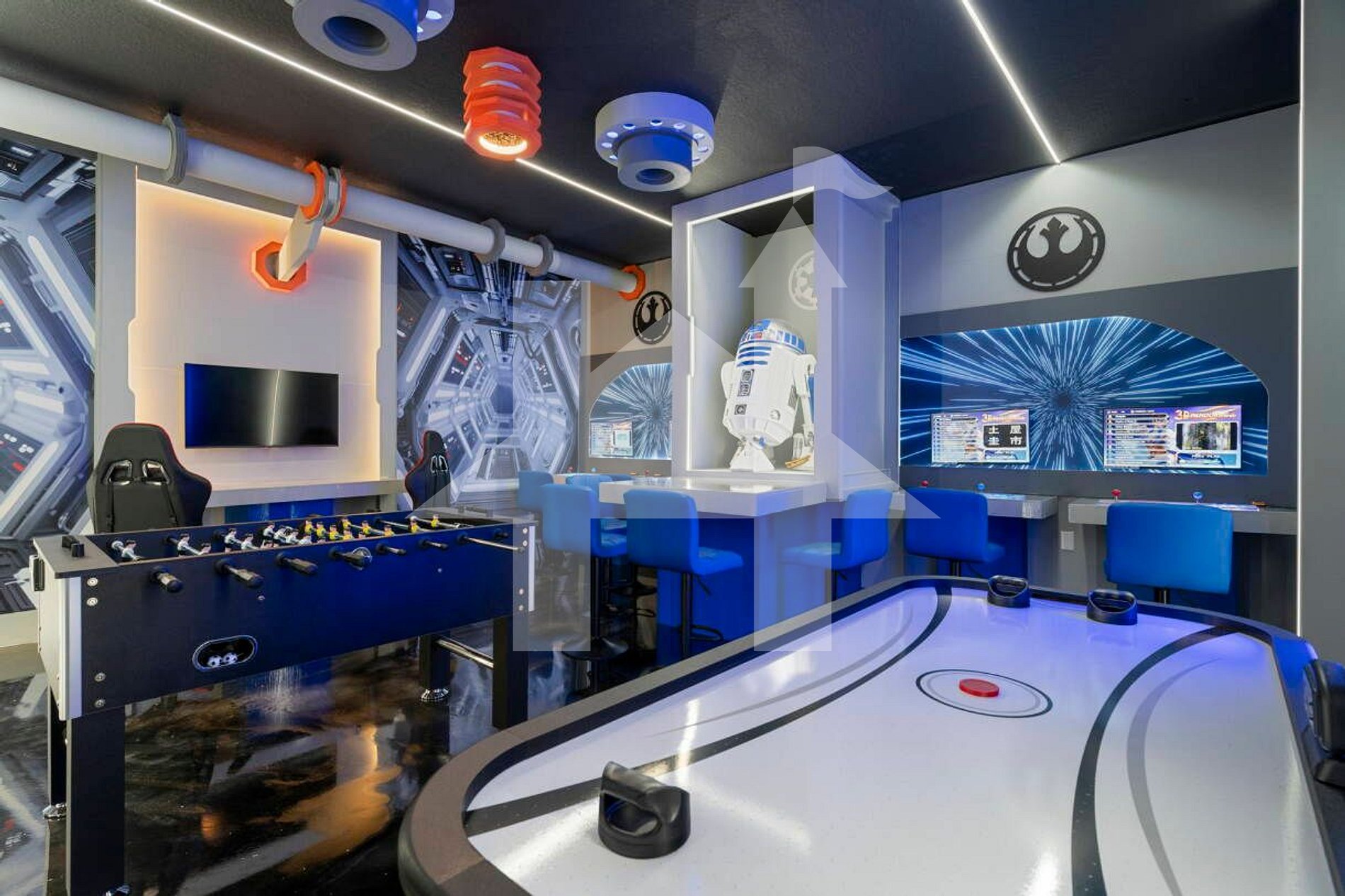 A poucos minutos da Disney, esta casa elegante com 8 quartos no Windsor Westside oferece conforto e diversão para toda a família. Aproveite piscina privativa, quartos temáticos e estrutura completa de resort com lazy river, restaurante, academia e segurança 24h. Ideal para famílias e grupos que buscam uma estadia inesquecível em Orlando com suporte HoliStays 24h.