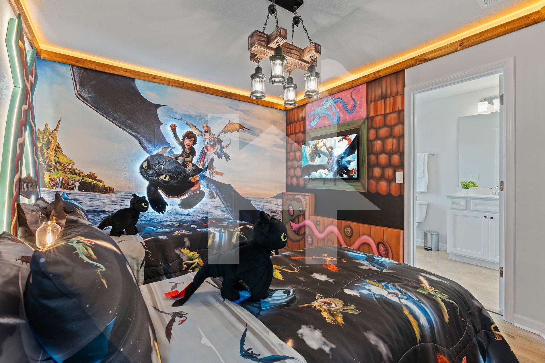 A cerca de 15 minutos da Disney, esta casa 5 quartos e 5 banheiros no Windsor Cay Resort oferece piscina privativa aquecida, sala de cinema, game room Star Wars e quartos temáticos de Mickey, Minions e Dragões. Ideal para famílias que buscam conforto e diversão. Estrutura completa de resort, Wi-Fi, limpeza profissional e suporte 24h garantem uma estadia prática e acolhedora.