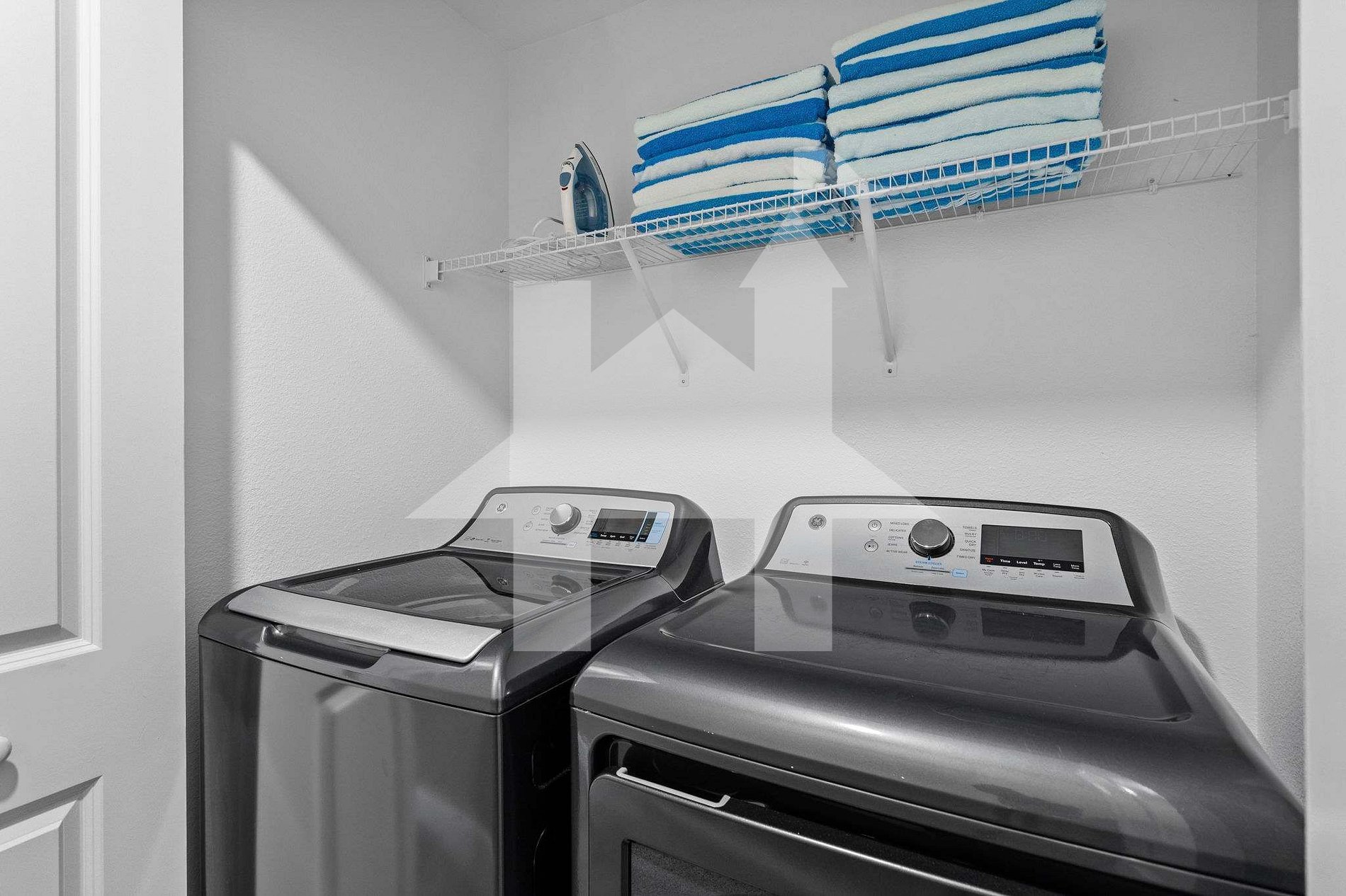 A casa ainda conta com lavanderia, estacionamento gratuito e WiFi incluso. Como parte do resort, você também tem acesso a dois clubhouses com piscinas, rio lento, academia, mini‑golfe e muito mais.