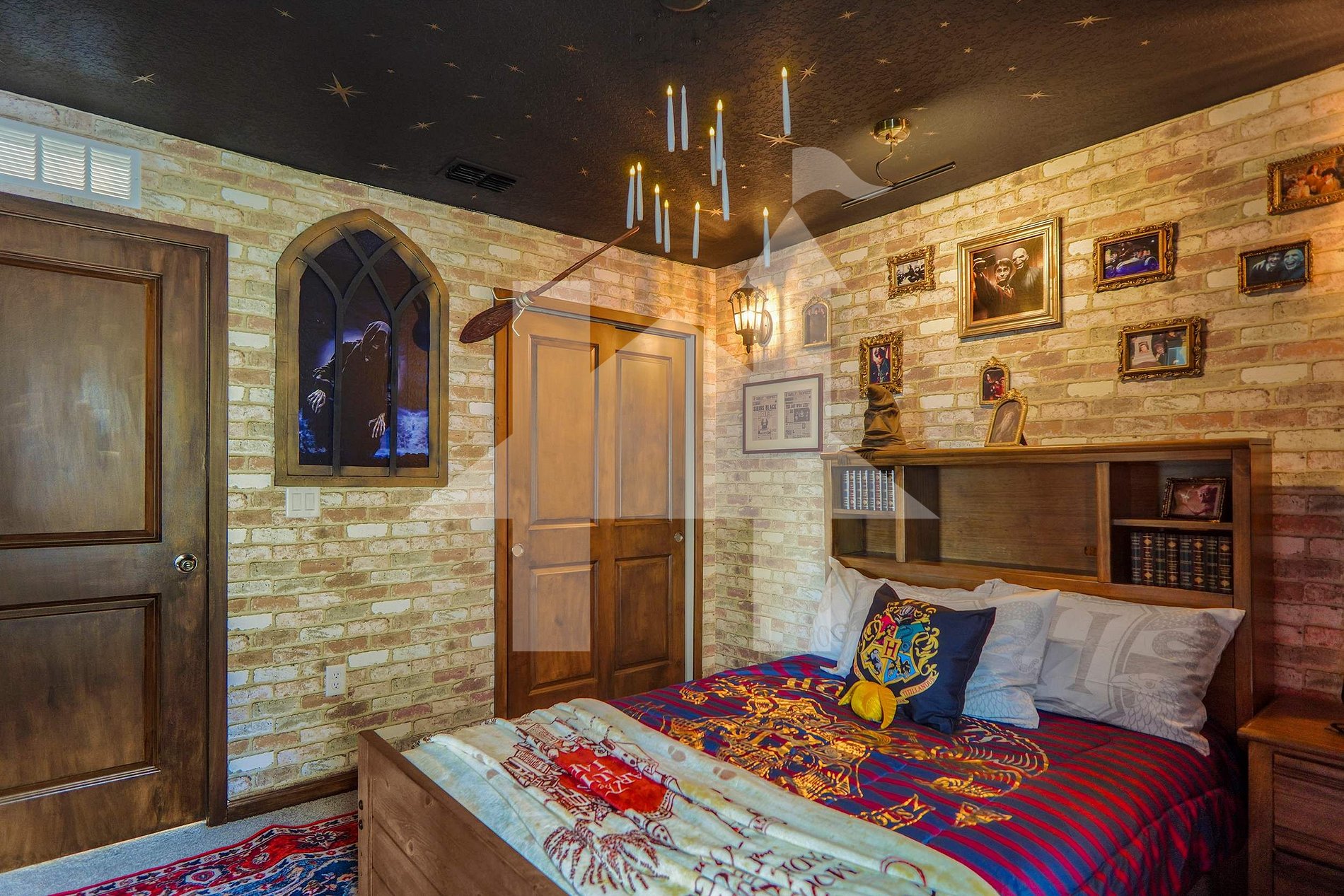 Quarto temático Harry Potter com cama de casal (banheiro Jack & Jill compartilhado com o próximo quarto queen)