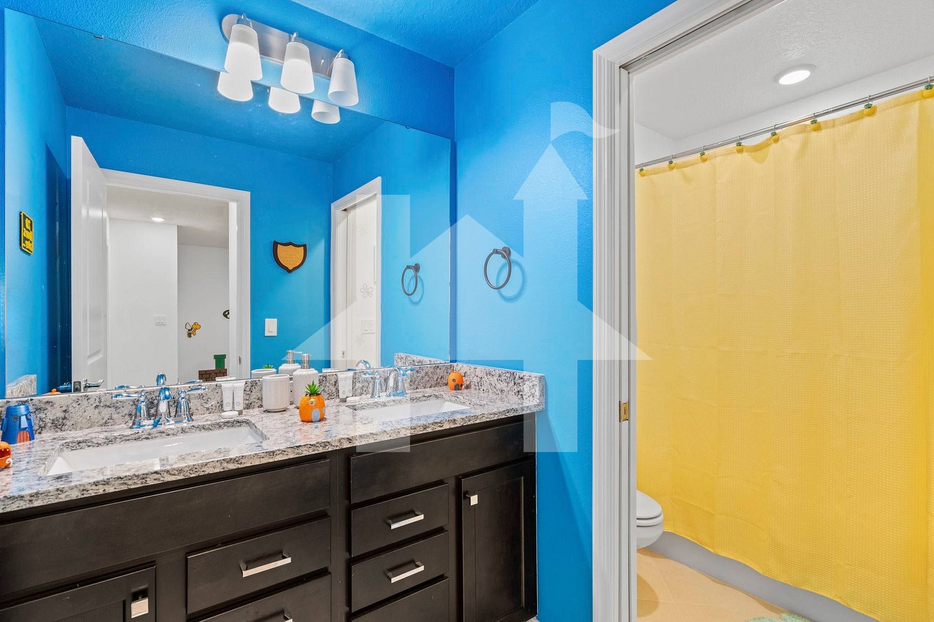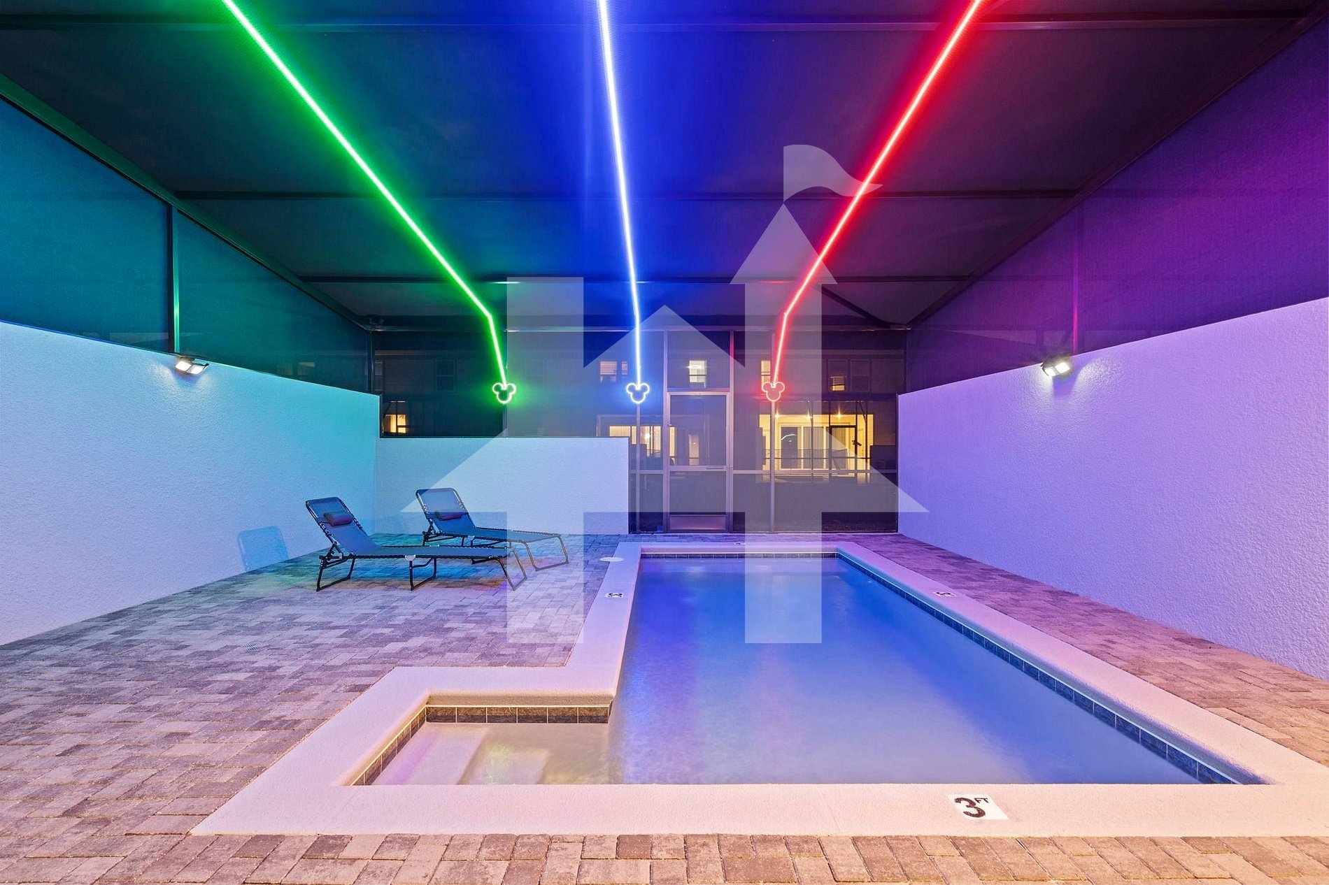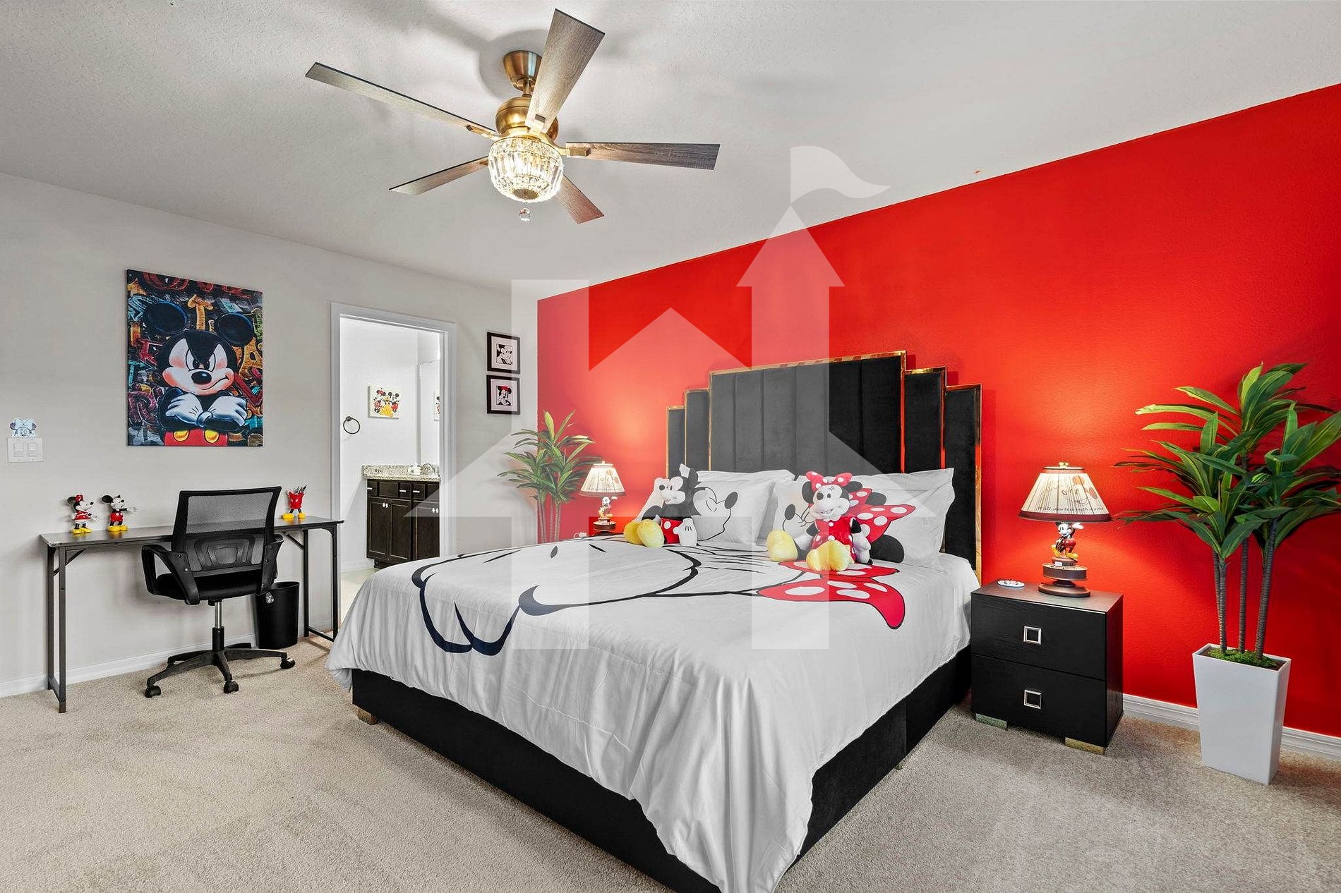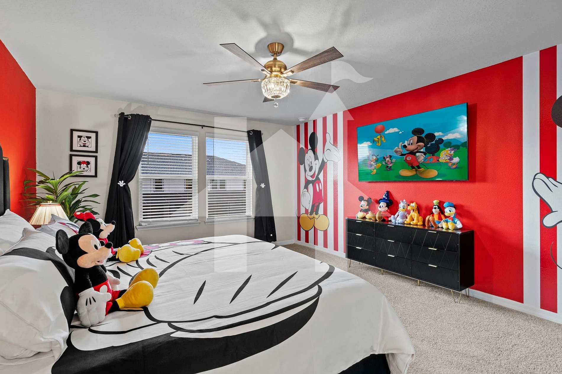 Viva 24 horas de magia nesta casa temática 5Q/4.5B no Windsor Cay Resort. Com piscina privativa, game room do Mario, quartos Mickey, Harry Potter, Lilo & Stitch, Toy Story e Rei Leão, acomoda até 11 hóspedes. Ideal para famílias com crianças, inclui berço, cadeira alta e proteção nas escadas. A poucos minutos da Disney, oferece conforto e diversão com estrutura de resort e atendimento completo HoliStays.